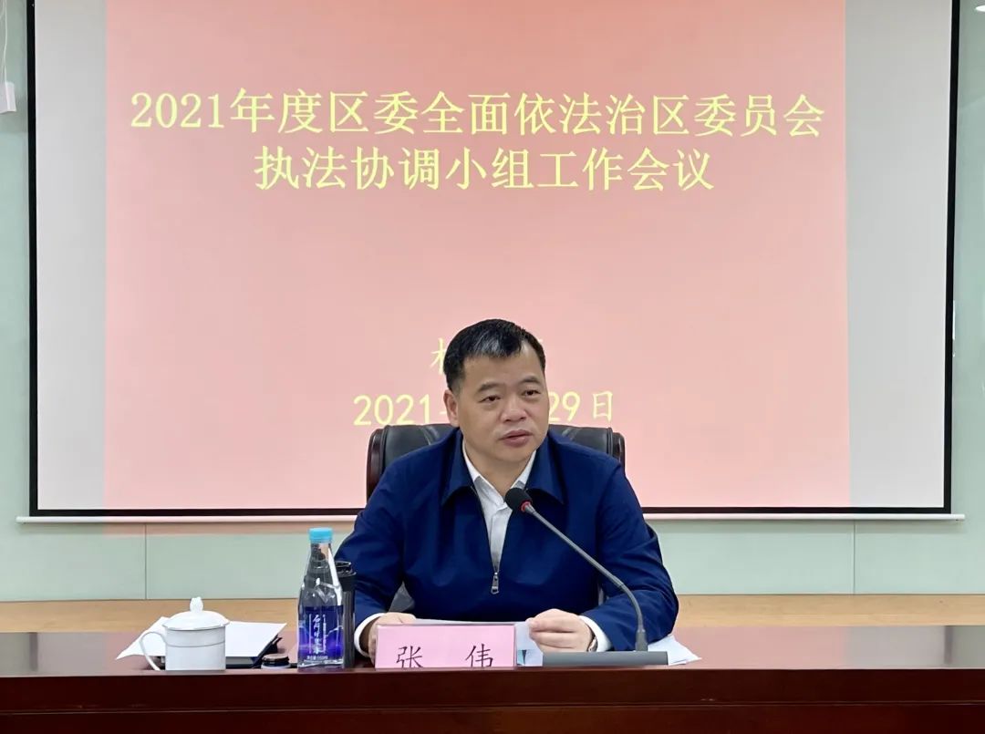 4月29日,相城區(qū)委全面依法治區(qū)委員會執(zhí)法協(xié)調(diào)小組召開工作會議。區(qū)委副書記、執(zhí)法協(xié)調(diào)小組組長張偉主持會議并講話。