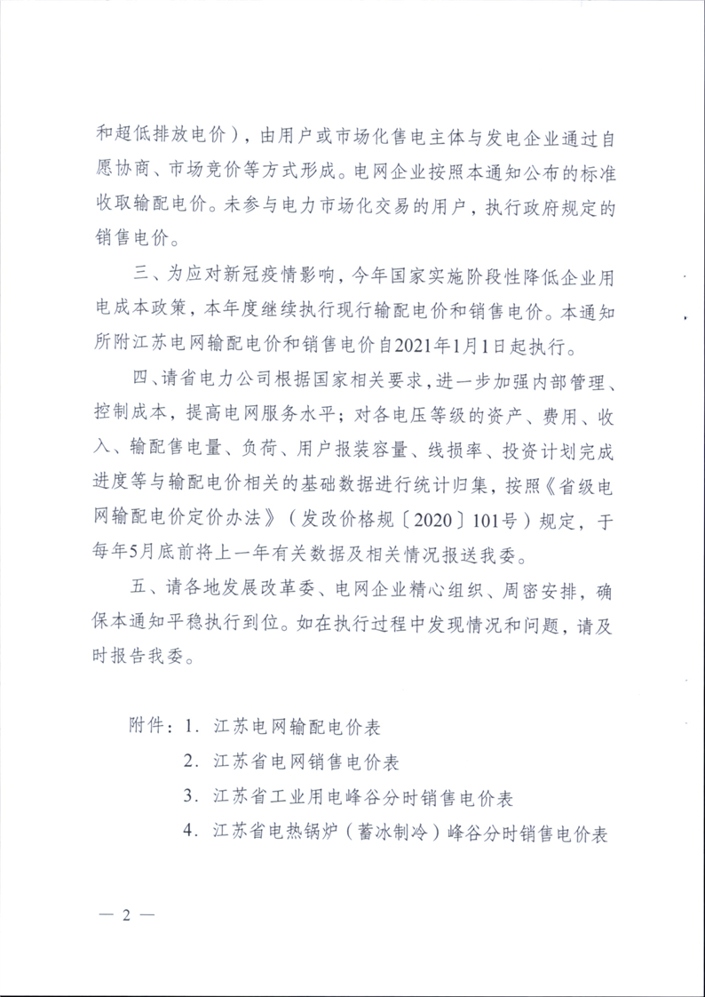 關(guān)于江蘇電網(wǎng)2020-2022年輸配電價(jià)和銷售電價(jià)有關(guān)事項(xiàng)的通知
