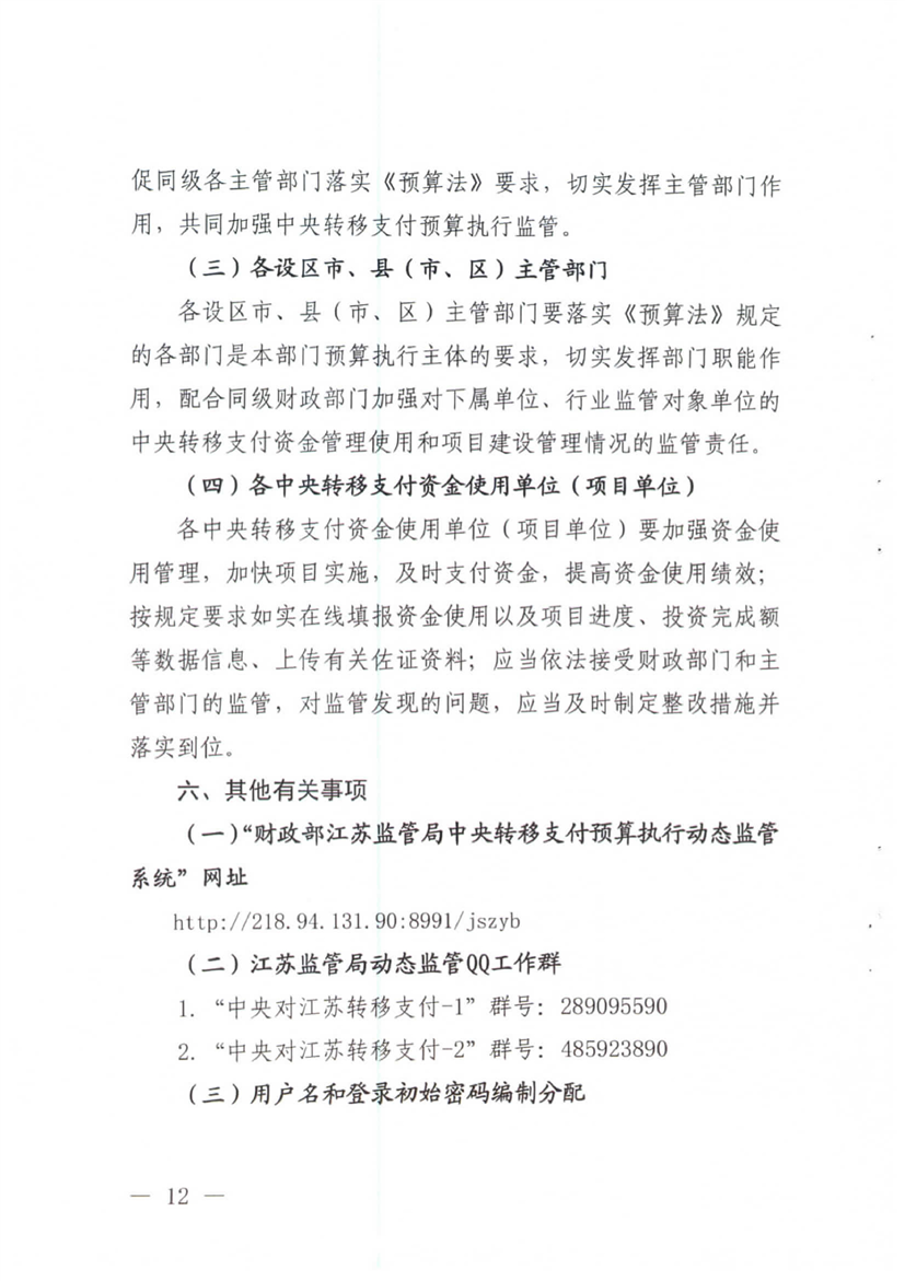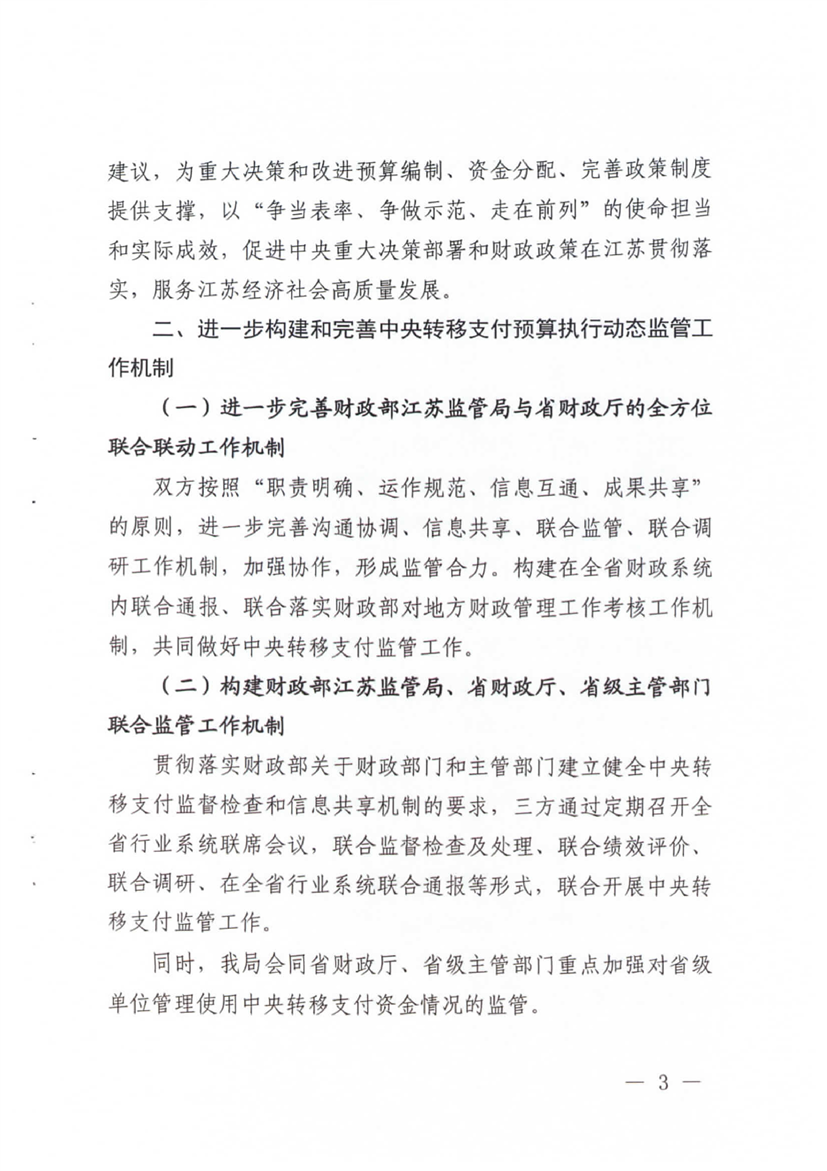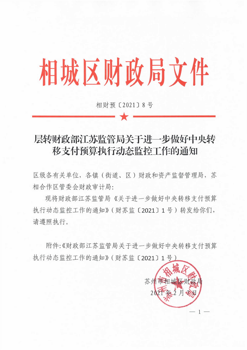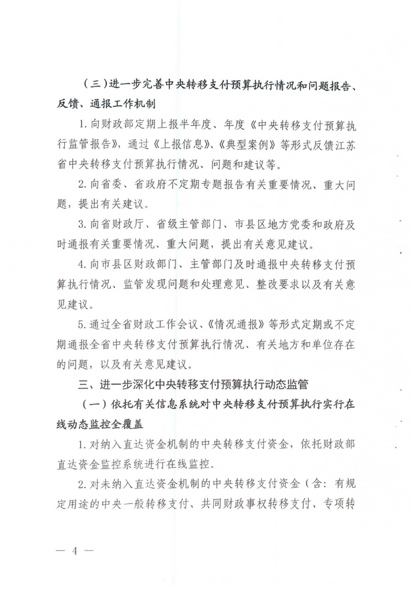 層轉(zhuǎn)財政部江蘇監(jiān)管局關(guān)于進(jìn)一步做好中央轉(zhuǎn)移支付預(yù)算執(zhí)行動態(tài)監(jiān)控工作的通知