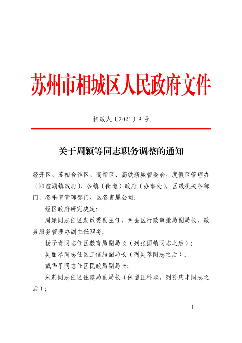 關(guān)于周穎等同志職務(wù)調(diào)整的通知