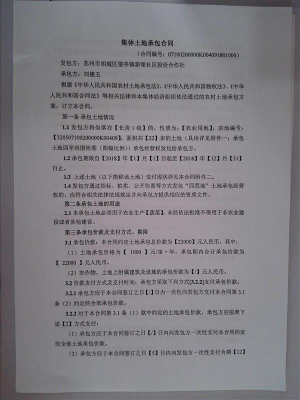 集體土地承包合同(長(zhǎng)房1組)