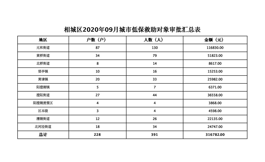 相城區(qū)2020年09月城市低保救助對象審批匯總表