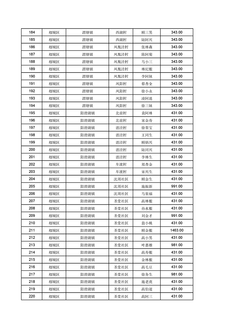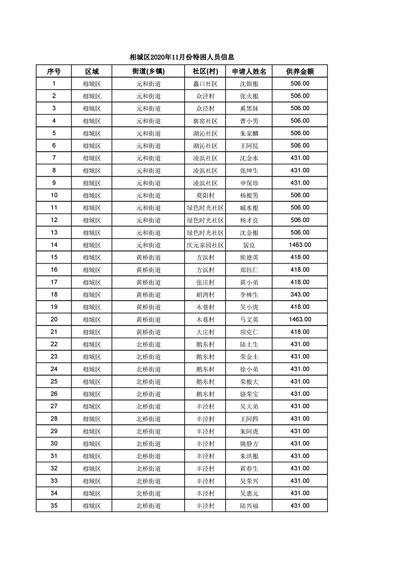 相城區(qū)2020年11月份特困人員信息