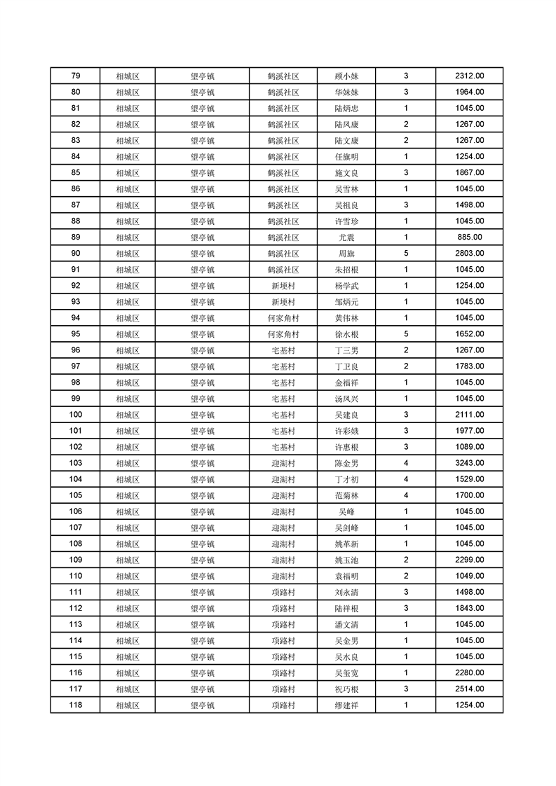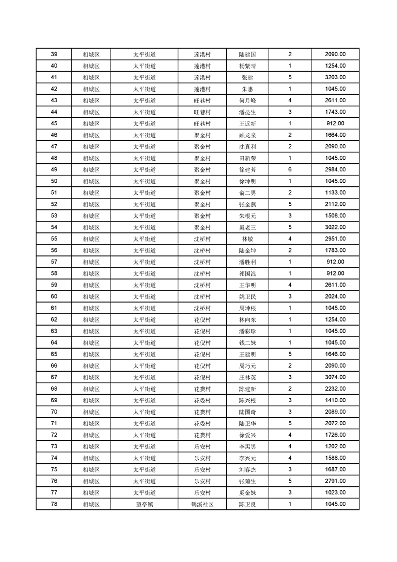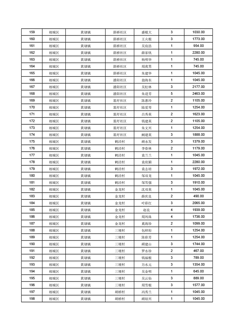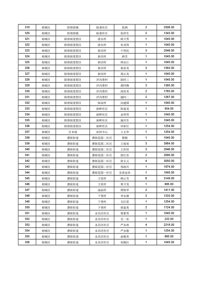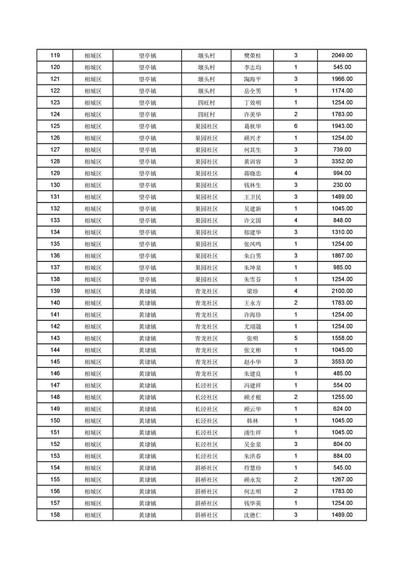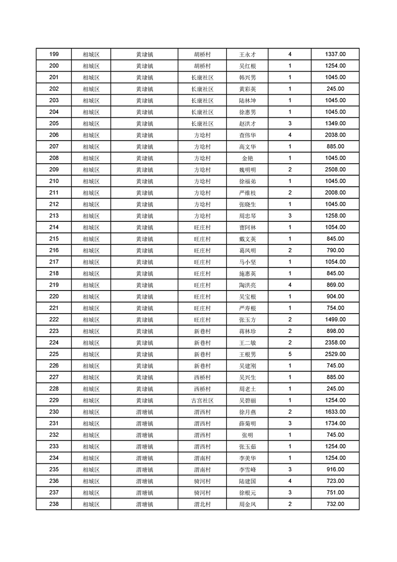 相城區(qū)2020年11月份農(nóng)村低保人員信息