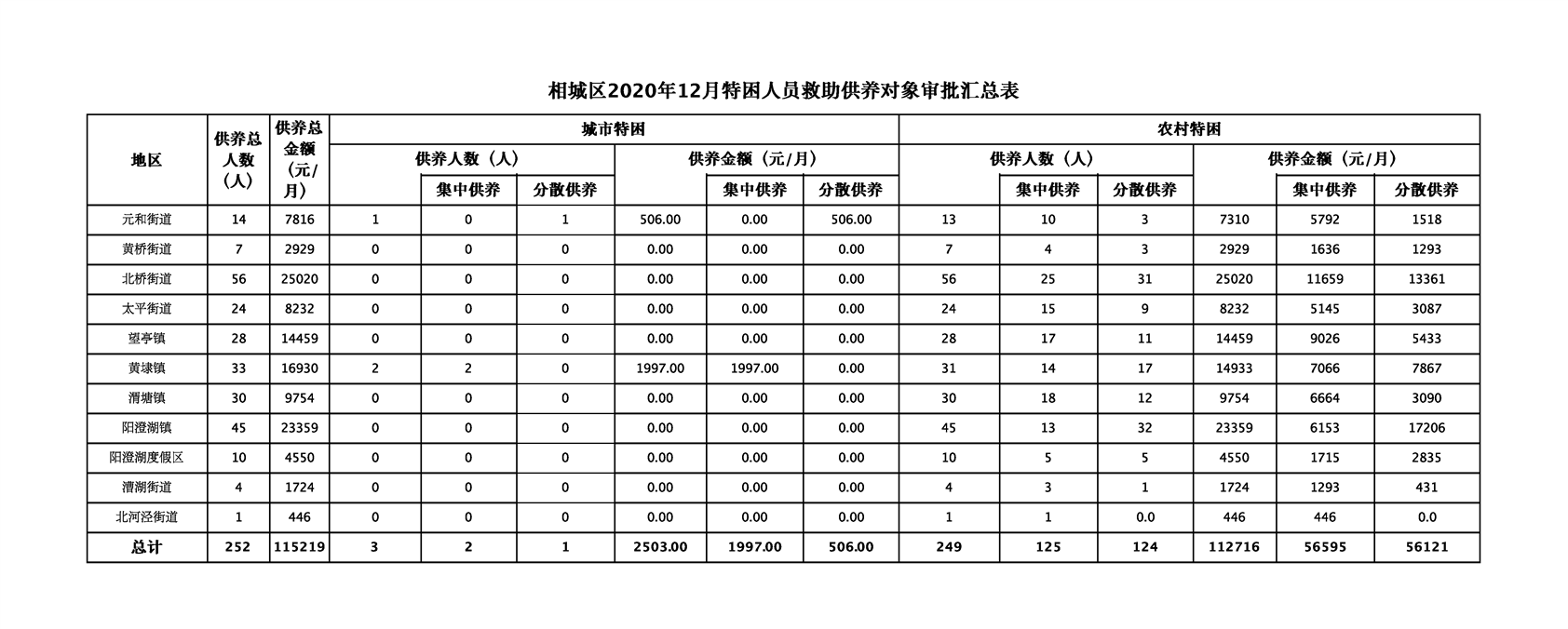 相城區(qū)2020年12月特困人員救助供養(yǎng)對(duì)象審批匯總表