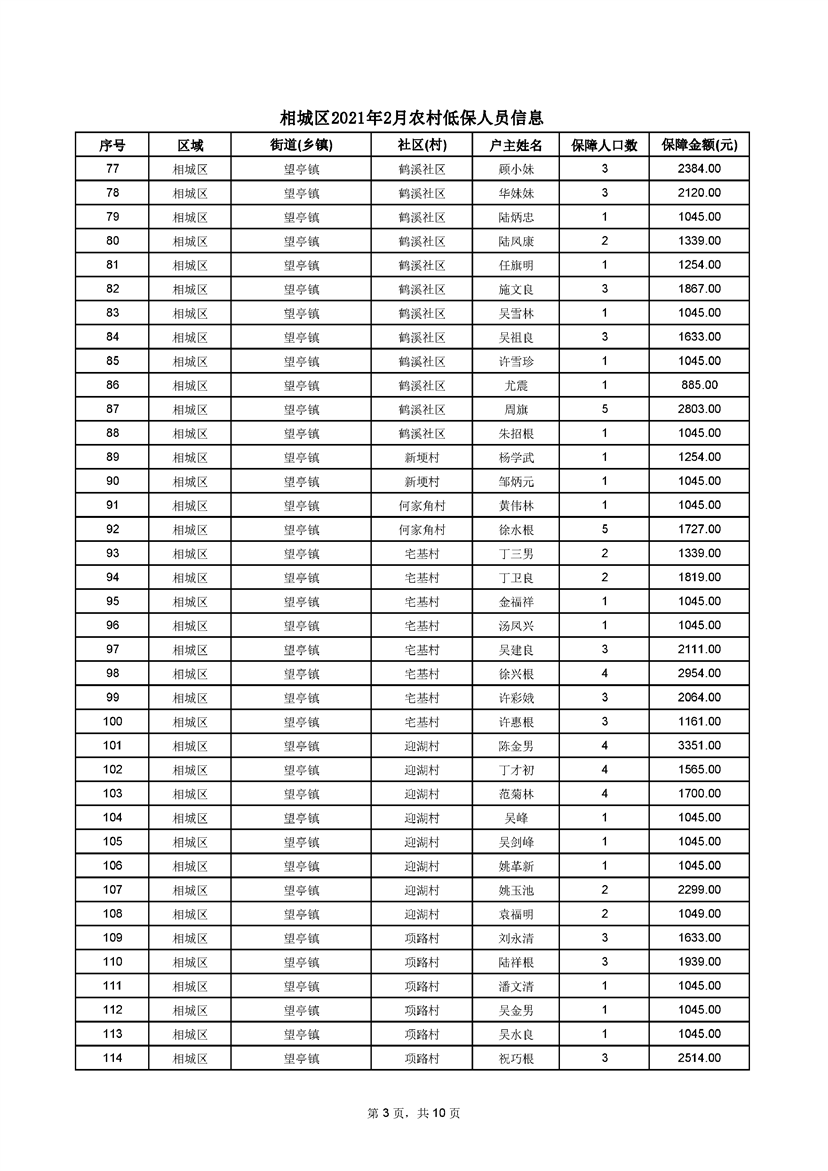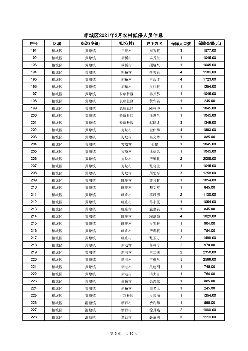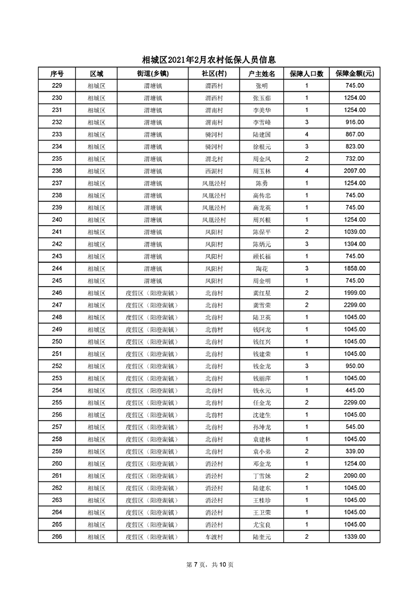 相城區(qū)2021年2月農(nóng)村低保人員信息