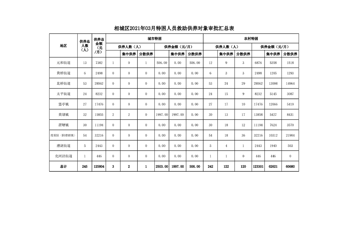 相城區(qū)2021年03月特困人員救助供養(yǎng)對象審批匯總表