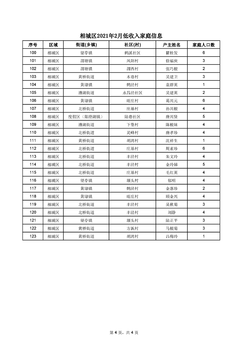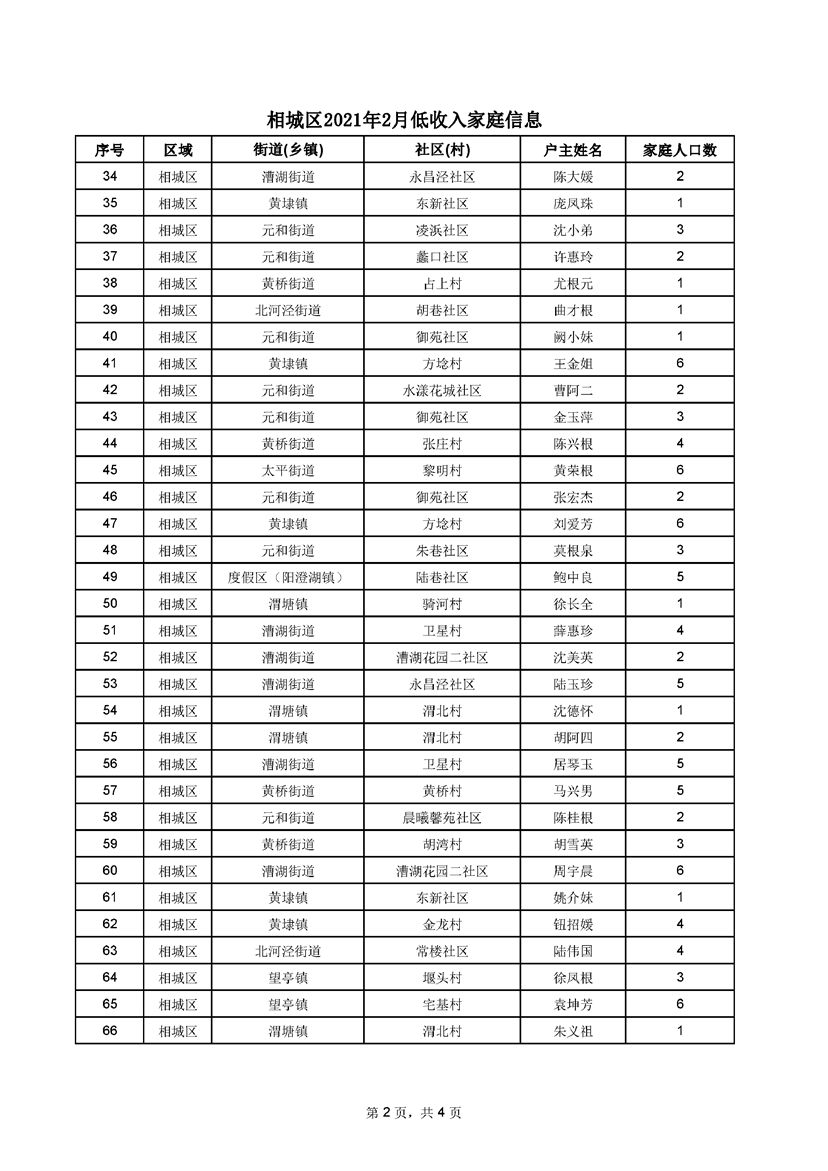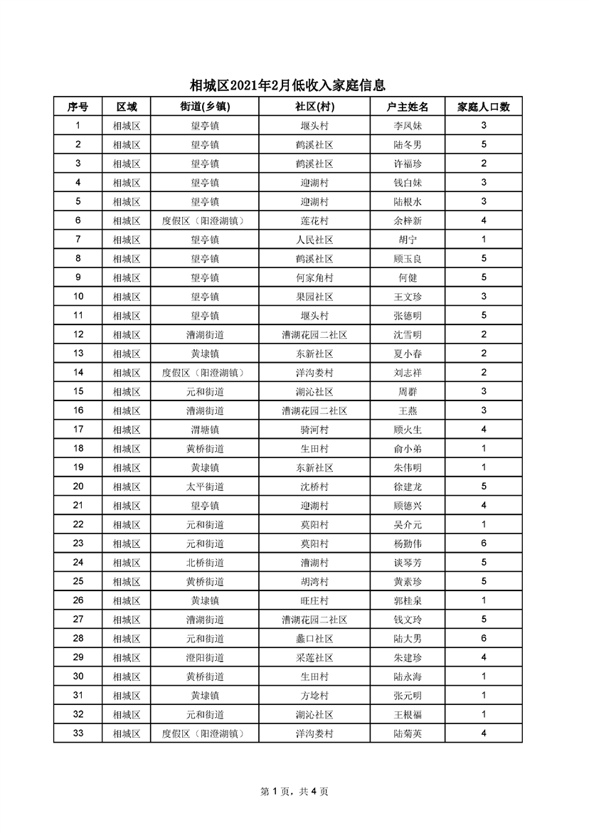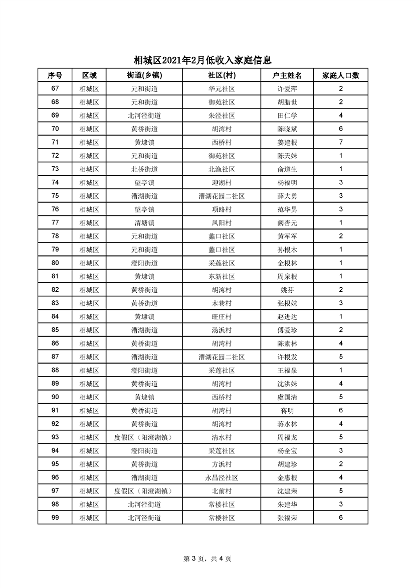 相城區(qū)2021年2月低收入家庭信息