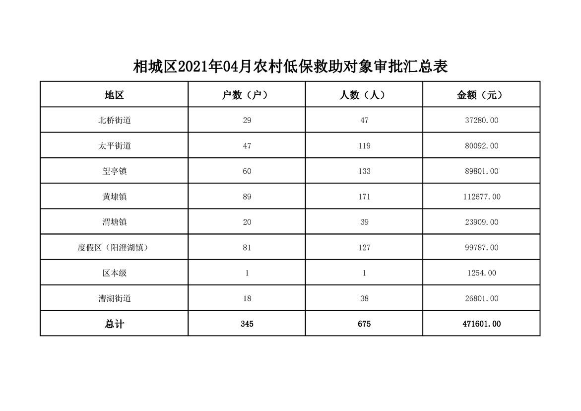 相城區(qū)2021年04月農(nóng)村低保救助對象審批匯總表