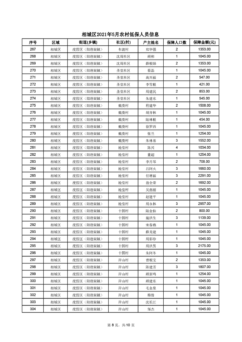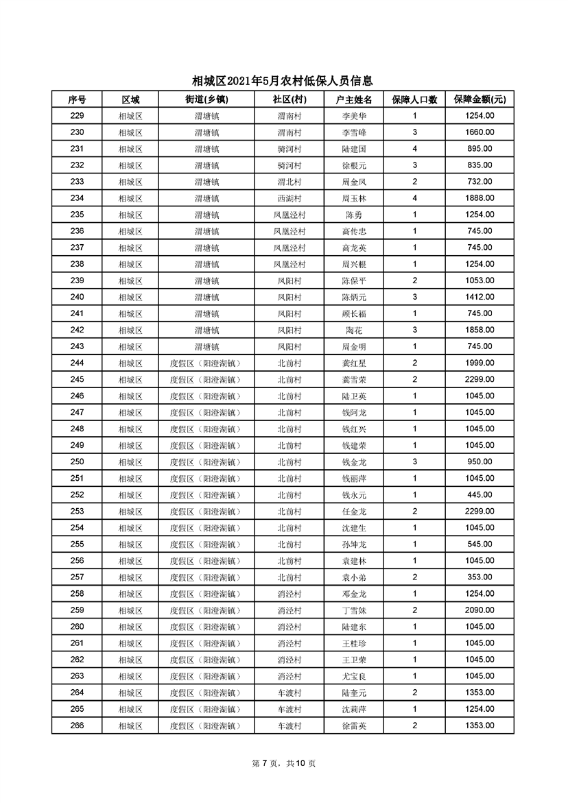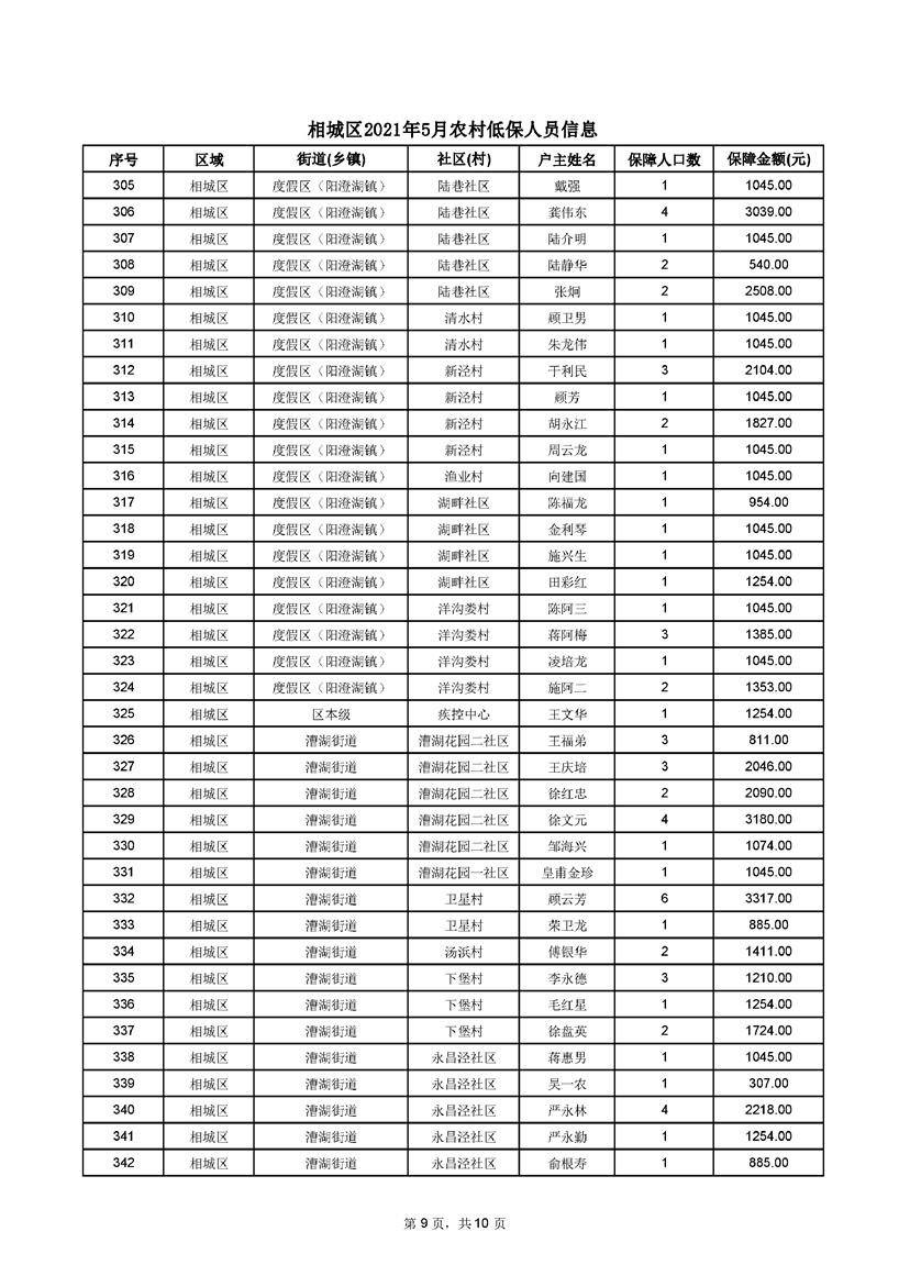 相城區(qū)2021年5月農(nóng)村低保人員信息