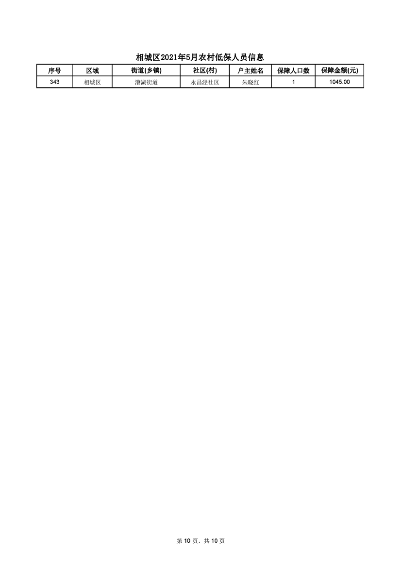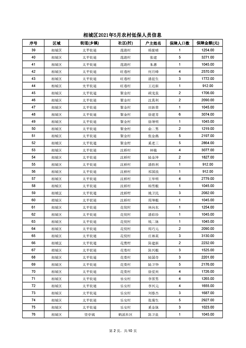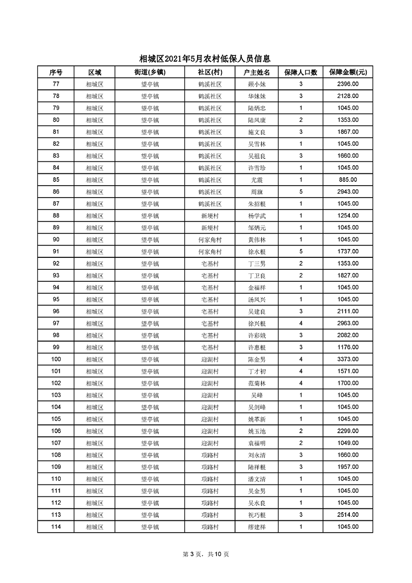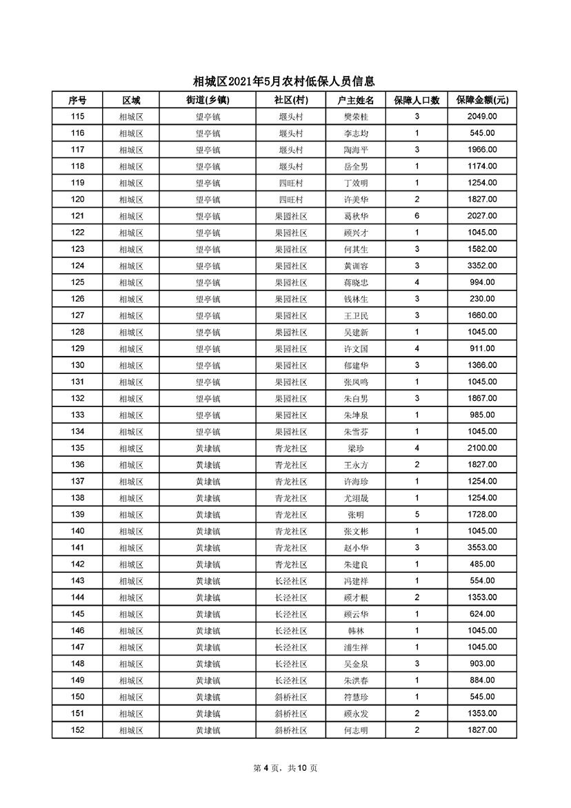 相城區(qū)2021年5月農(nóng)村低保人員信息