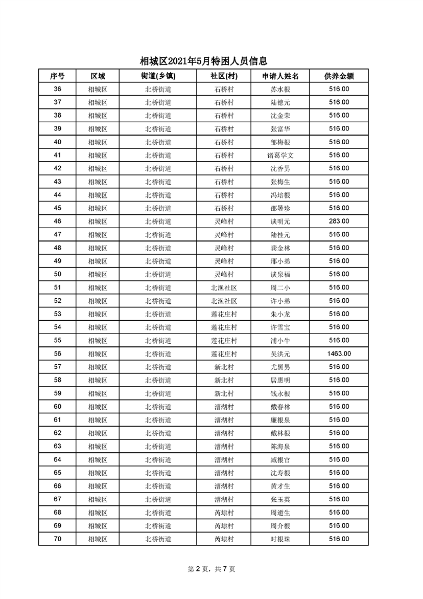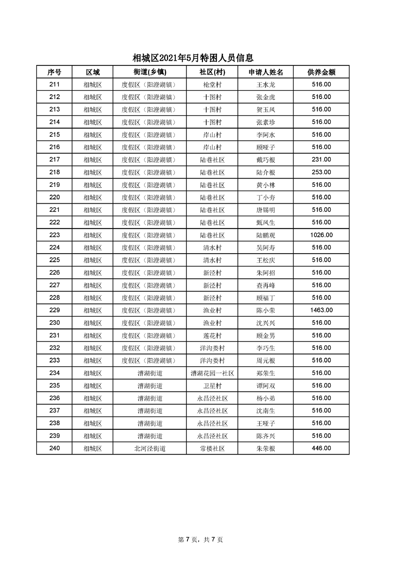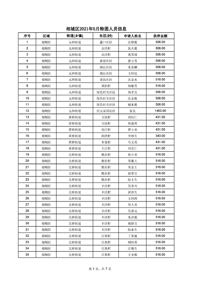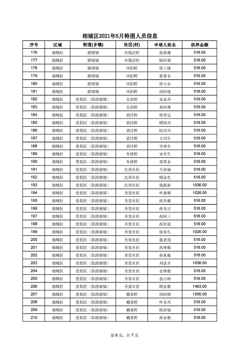 相城區(qū)2021年5月特困人員信息