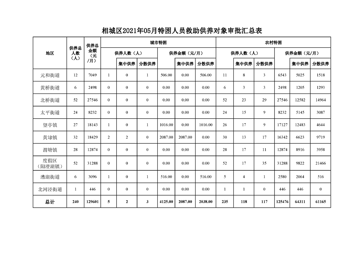 相城區(qū)2021年05月特困人員救助供養(yǎng)對象審批匯總表