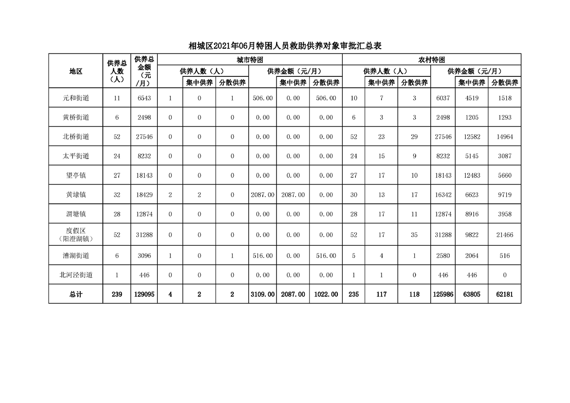 相城區(qū)2021年06月特困人員救助供養(yǎng)對(duì)象審批匯總表