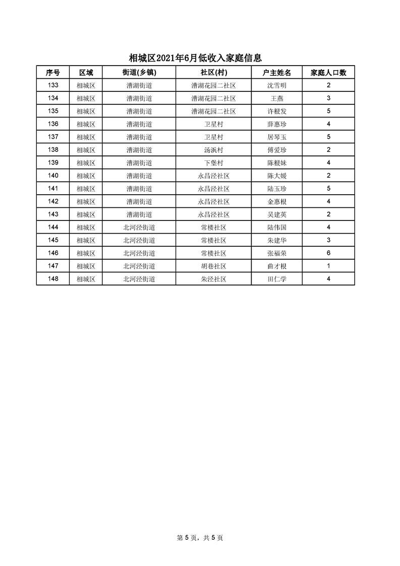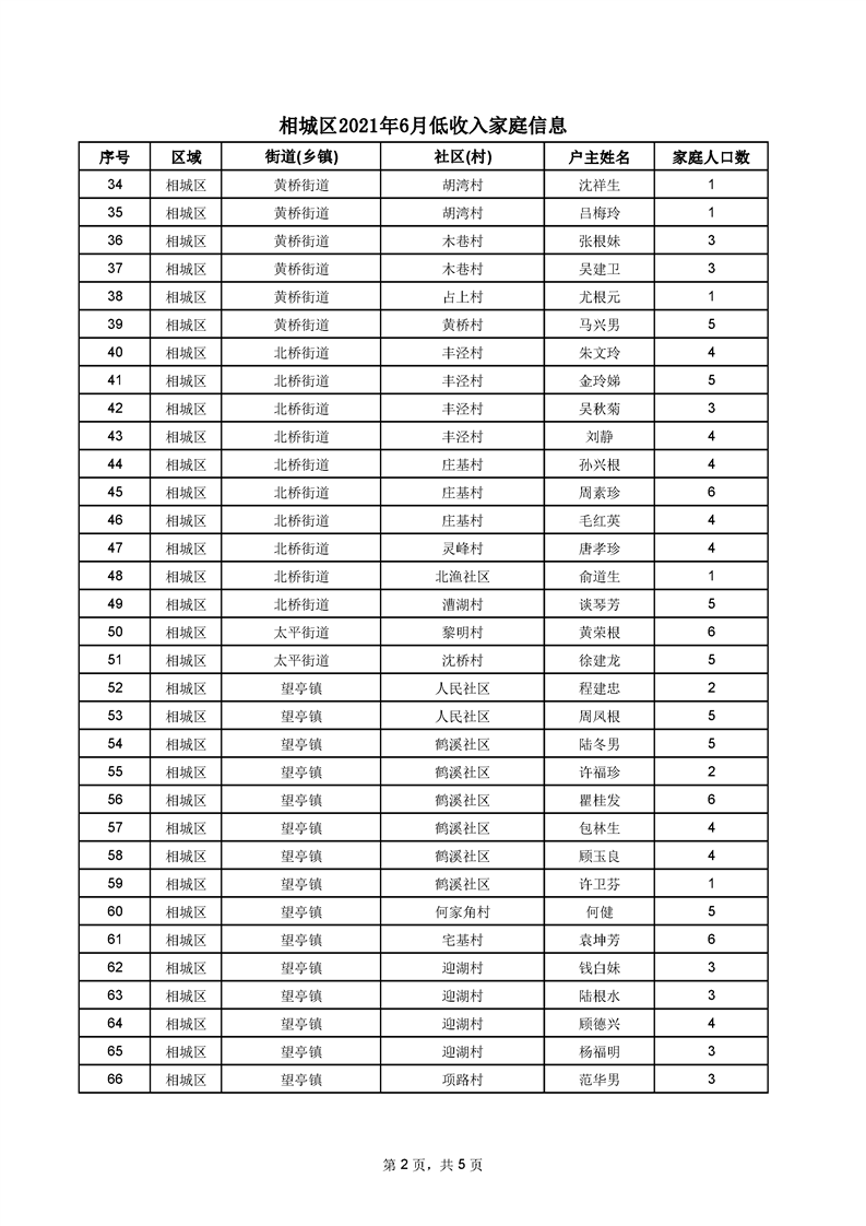 相城區(qū)2021年6月低收入家庭信息