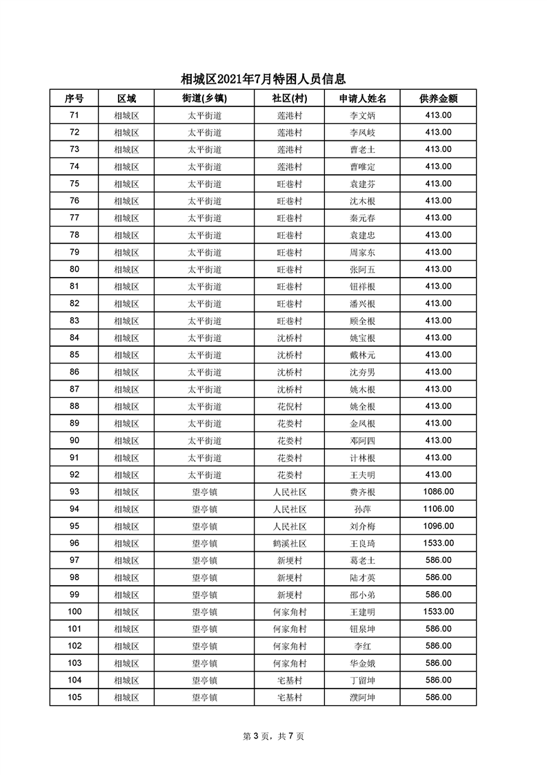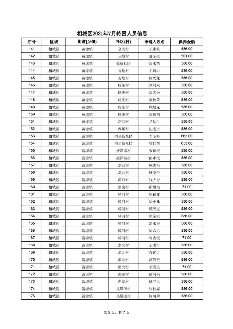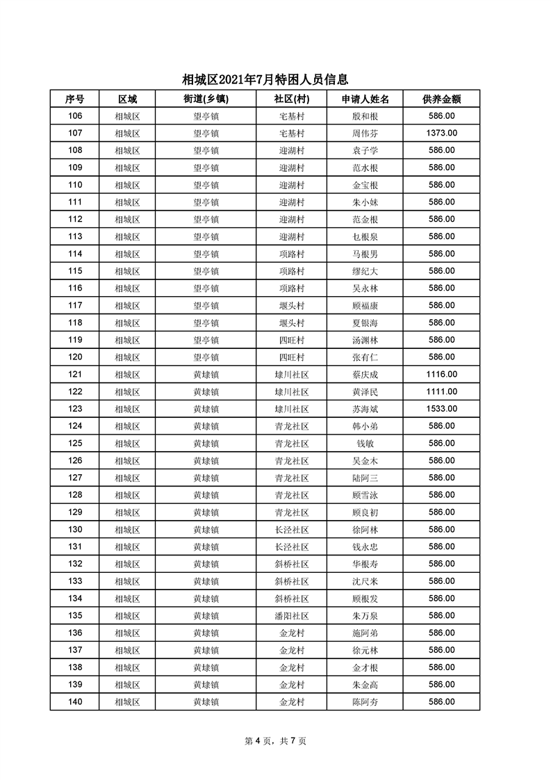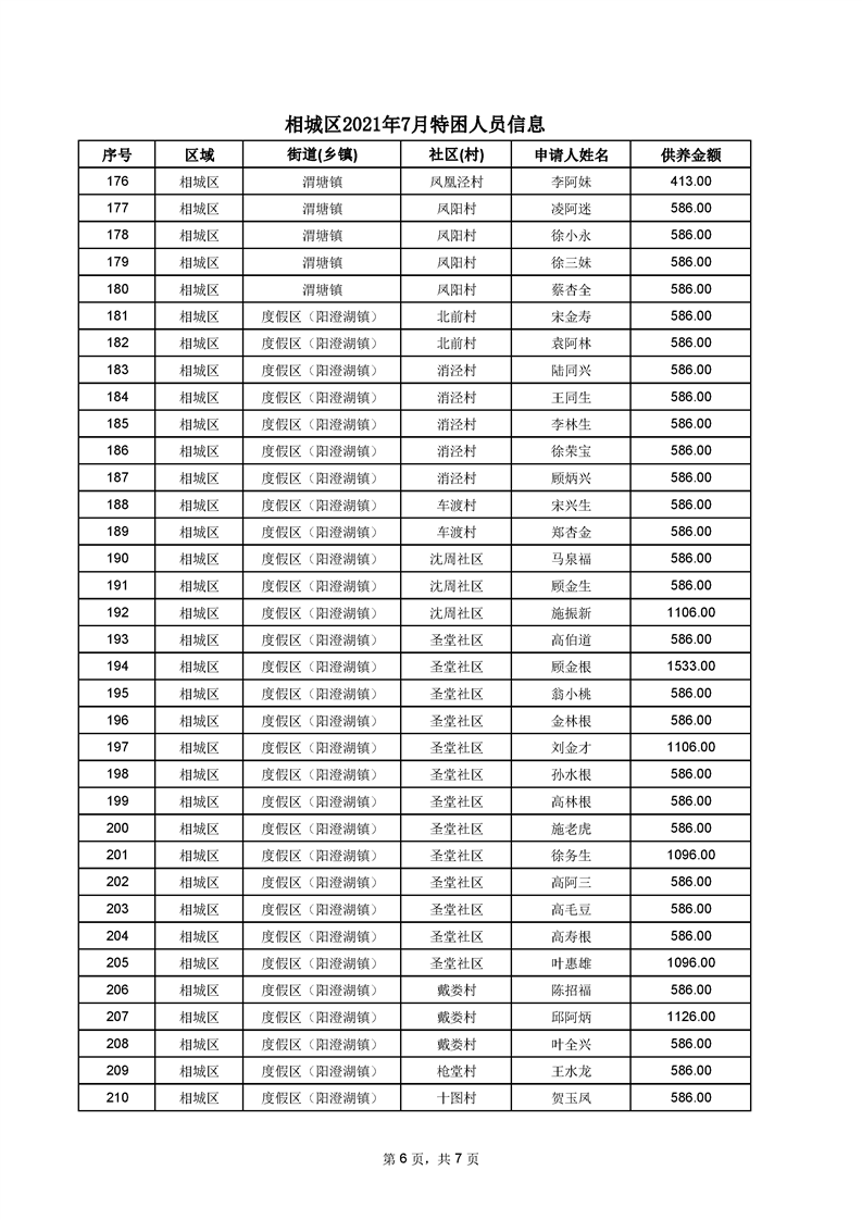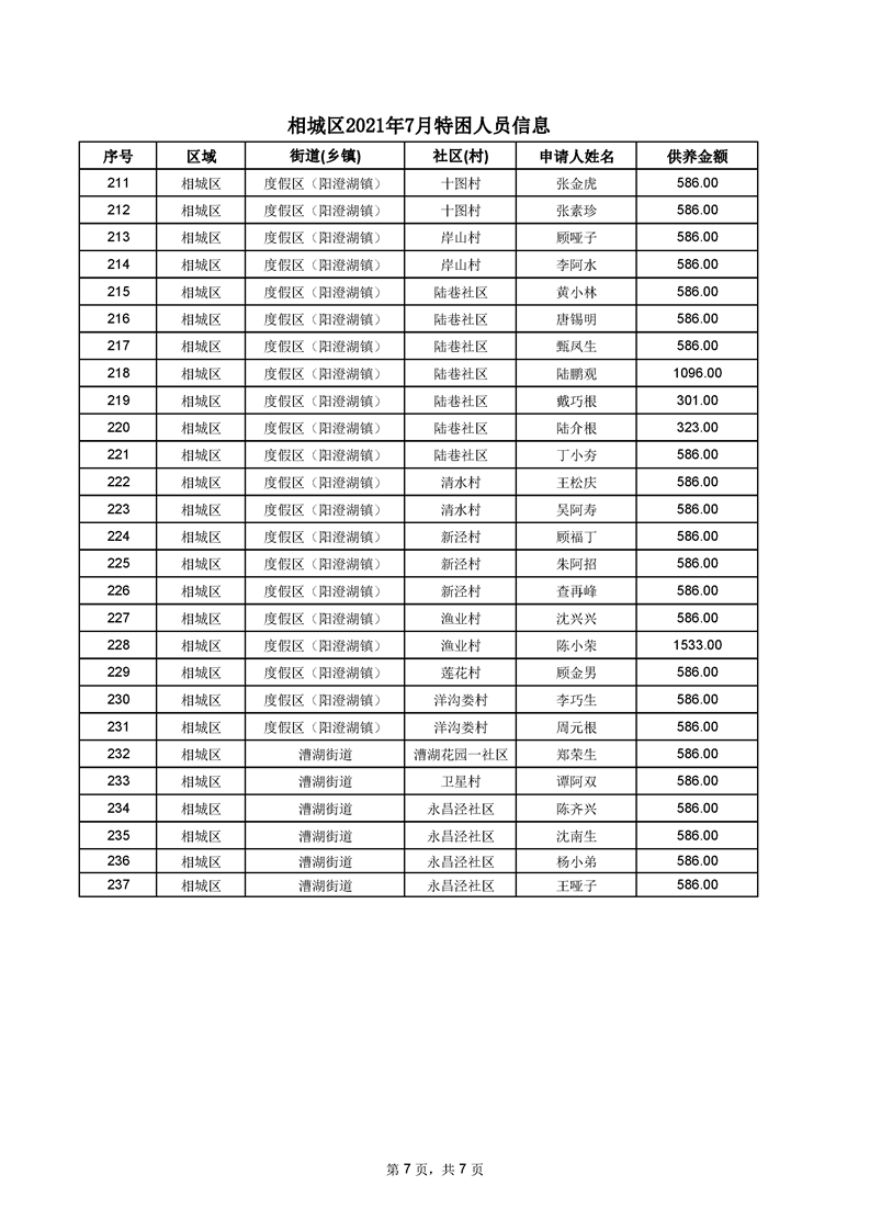 相城區(qū)2021年7月特困人員信息