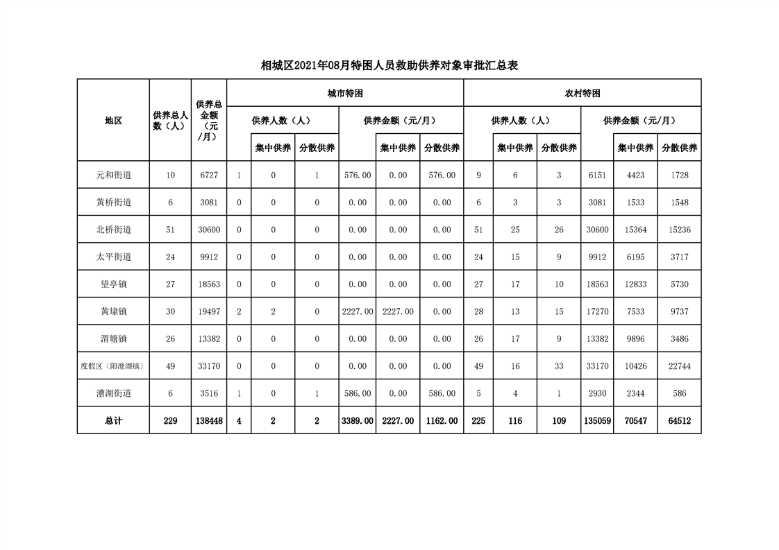 相城區(qū)2021年08月特困人員救助供養(yǎng)對象審批匯總表