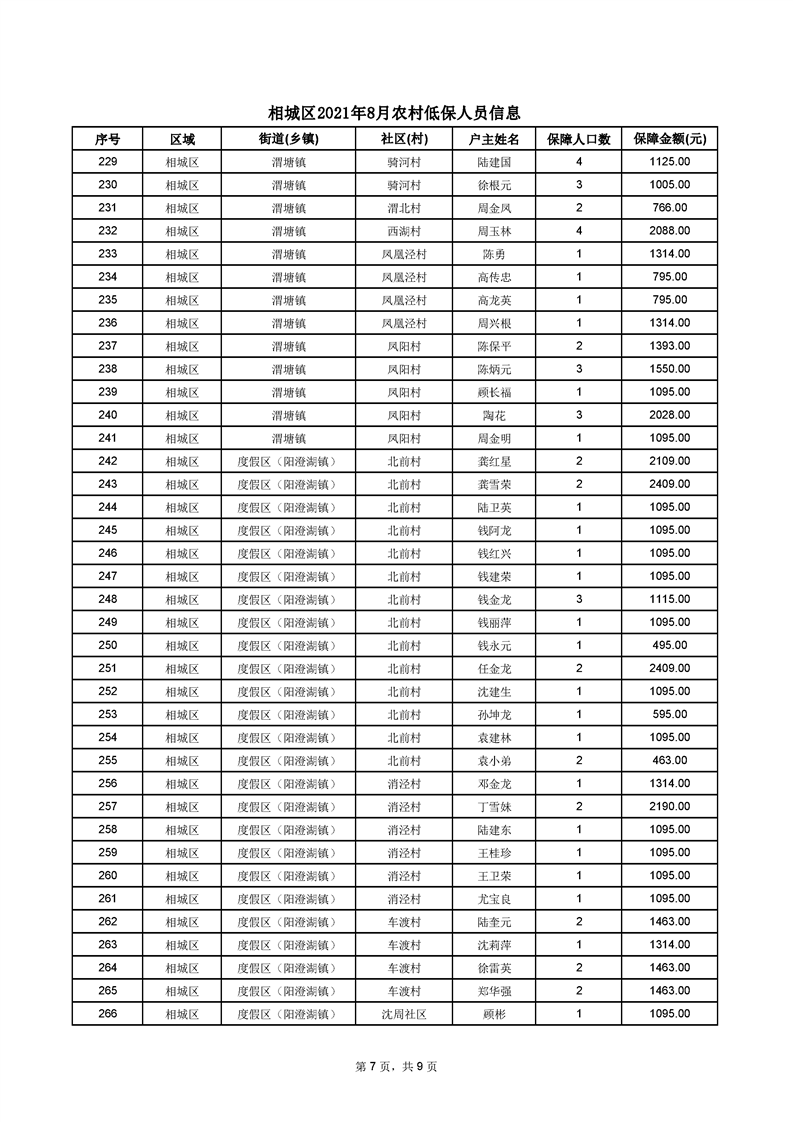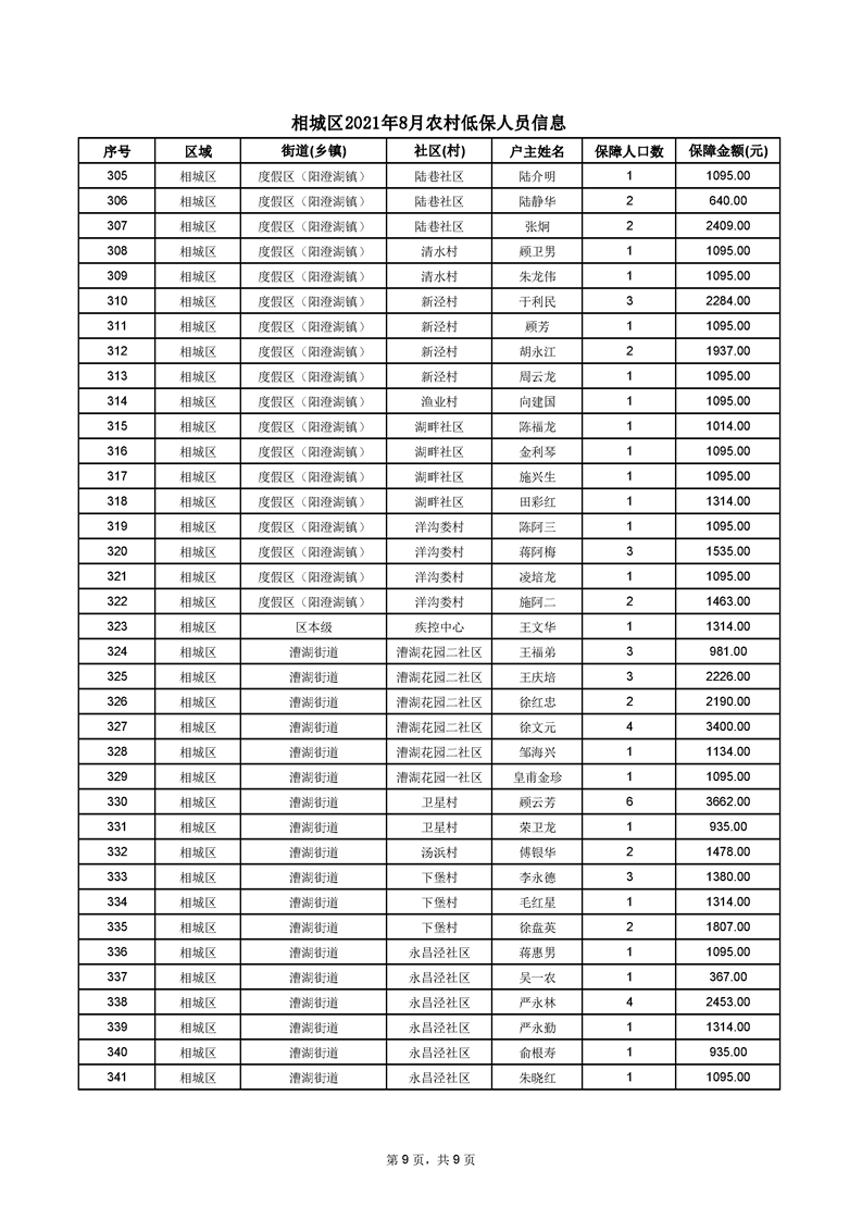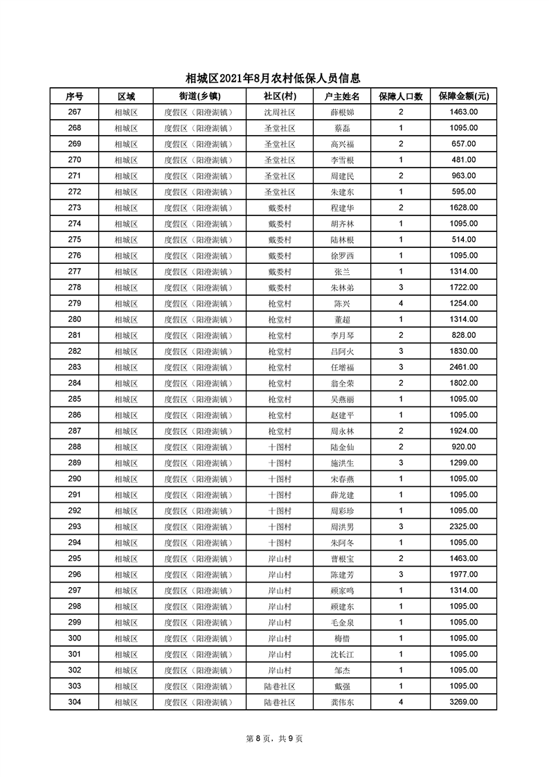 相城區(qū)2021年8月農(nóng)村低保人員信息
