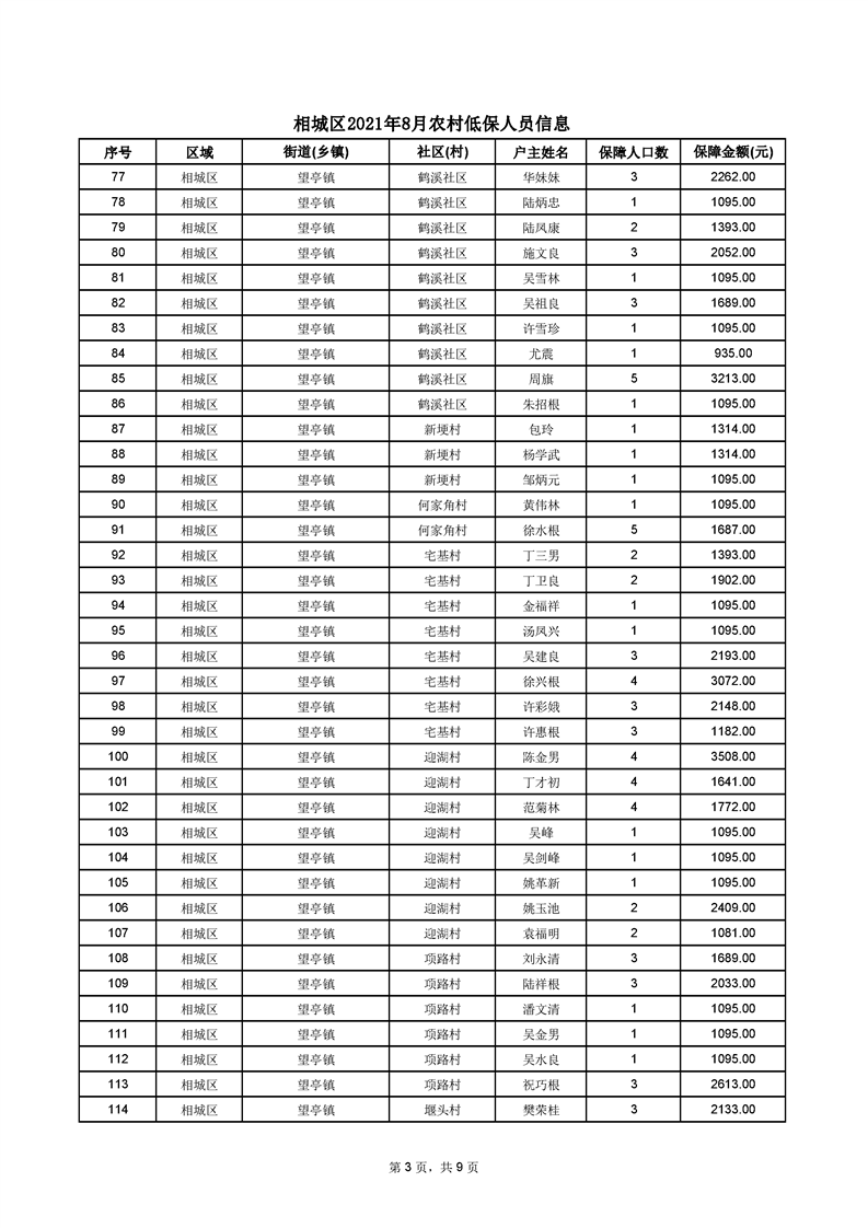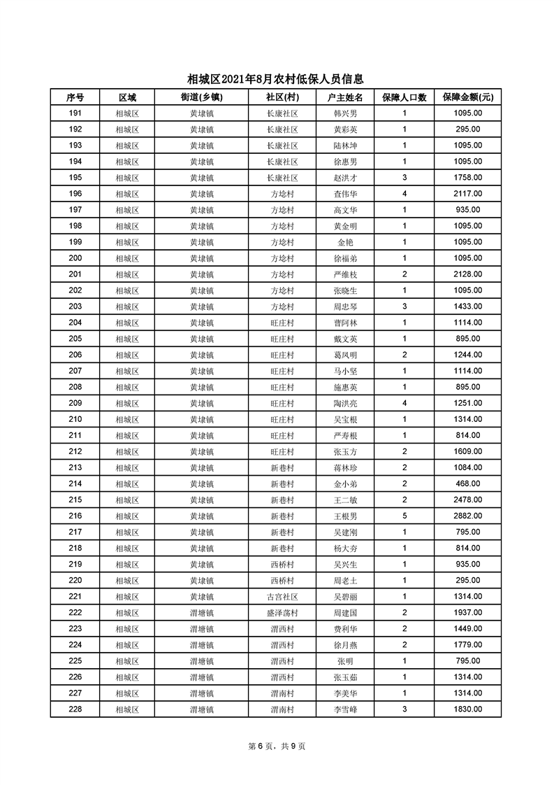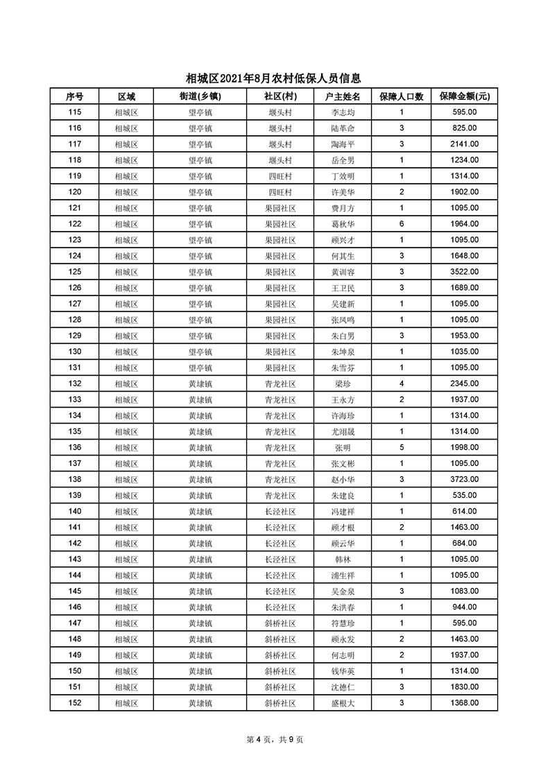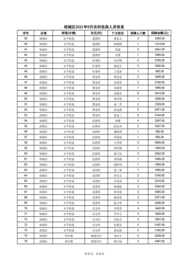 相城區(qū)2021年8月農(nóng)村低保人員信息