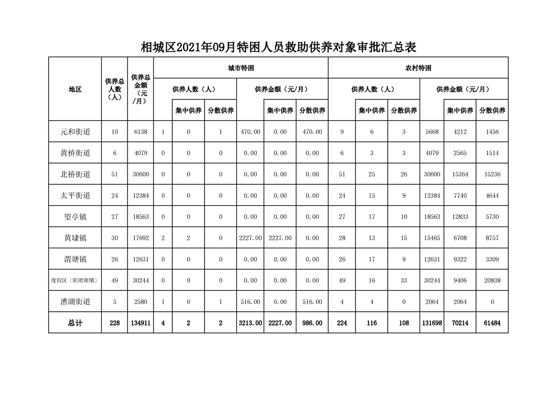 相城區(qū)2021年09月特困人員救助供養(yǎng)對(duì)象審批匯總表