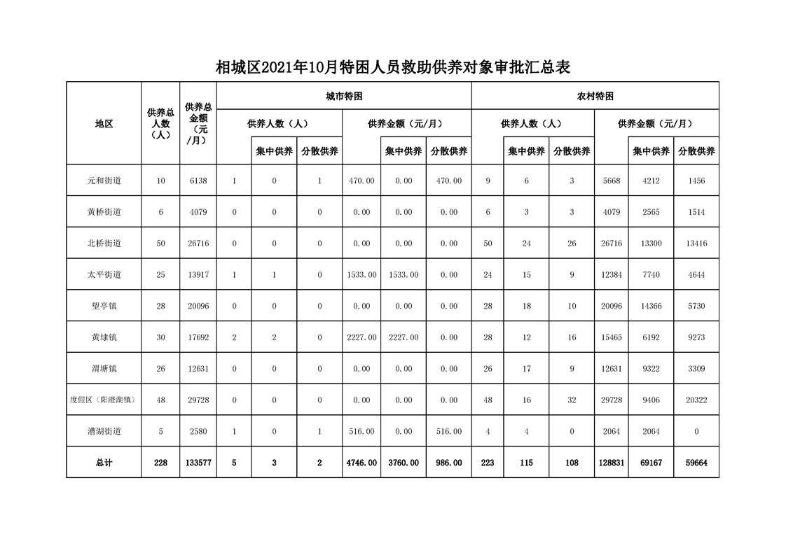 相城區(qū)2021年10月特困人員救助供養(yǎng)對象審批匯總表