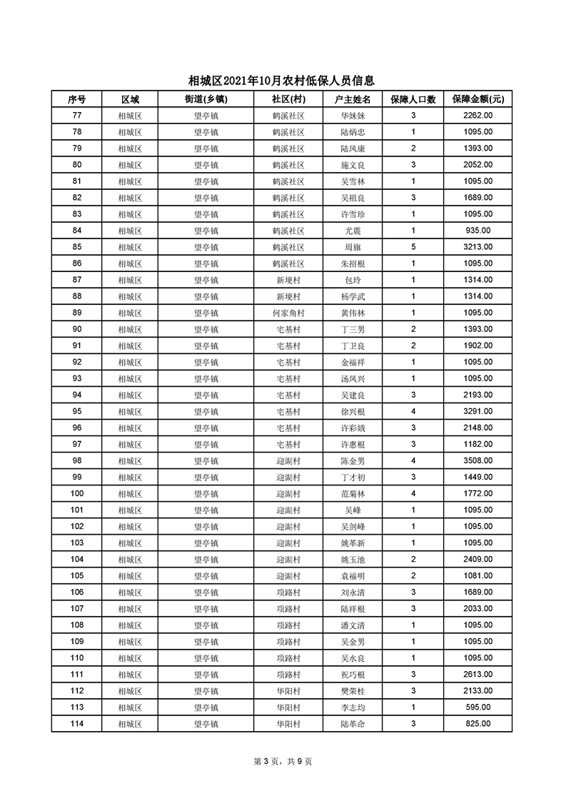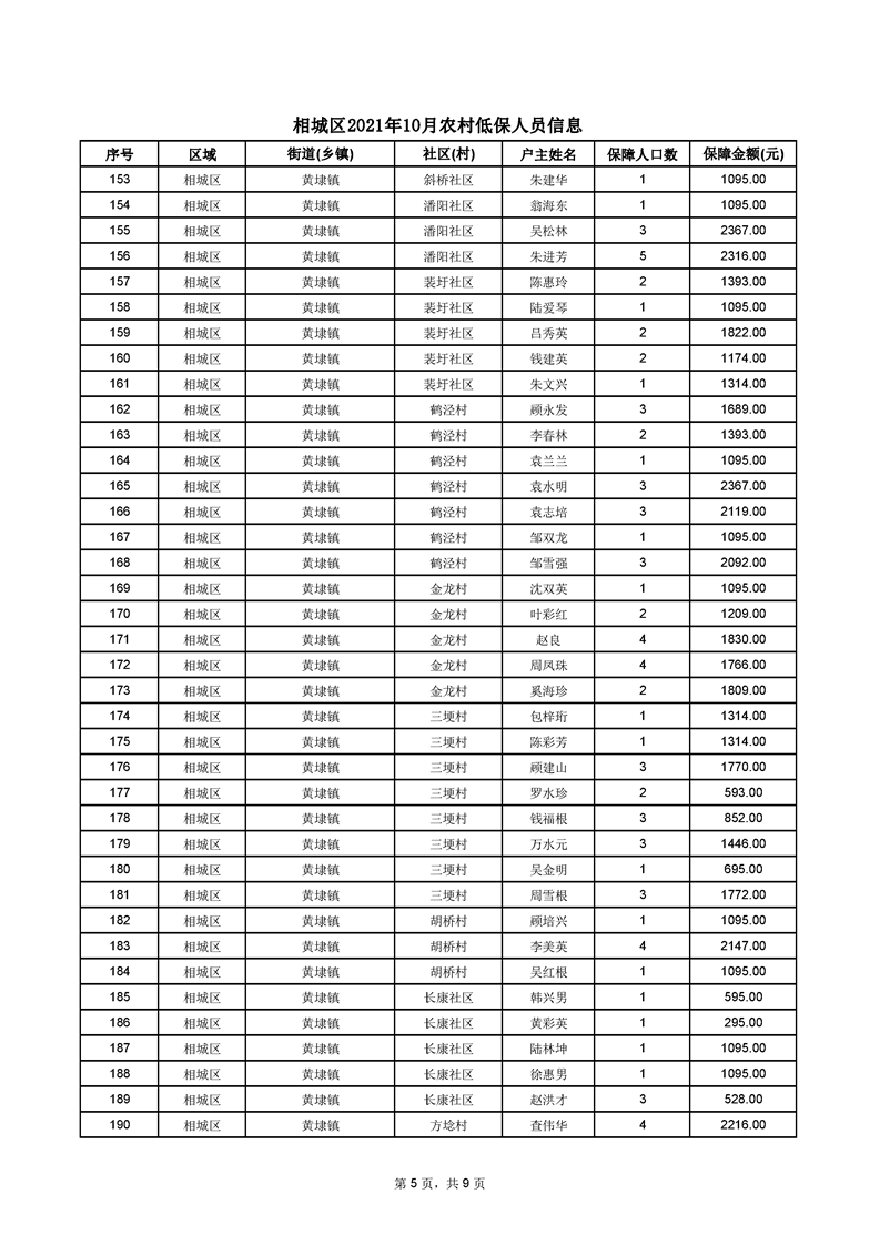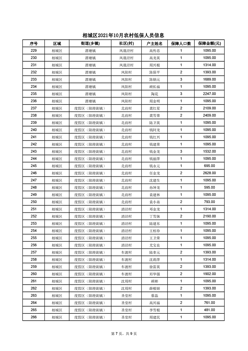 相城區(qū)2021年10月農(nóng)村低保人員信息