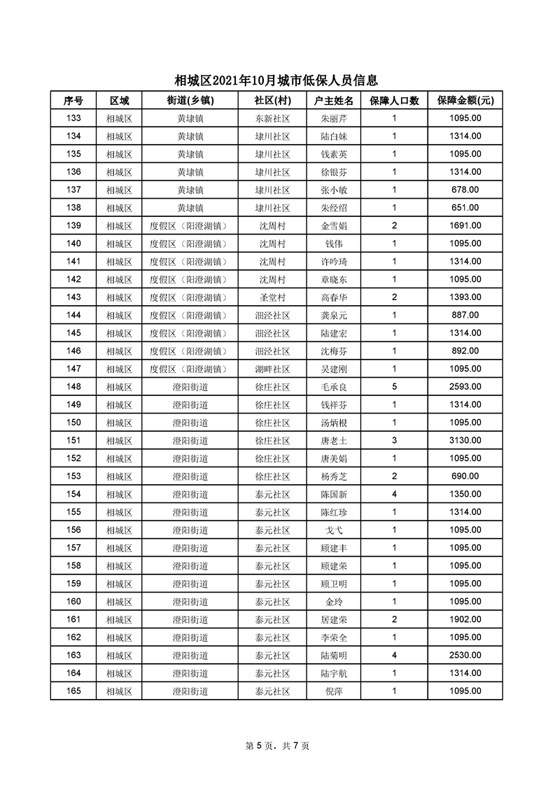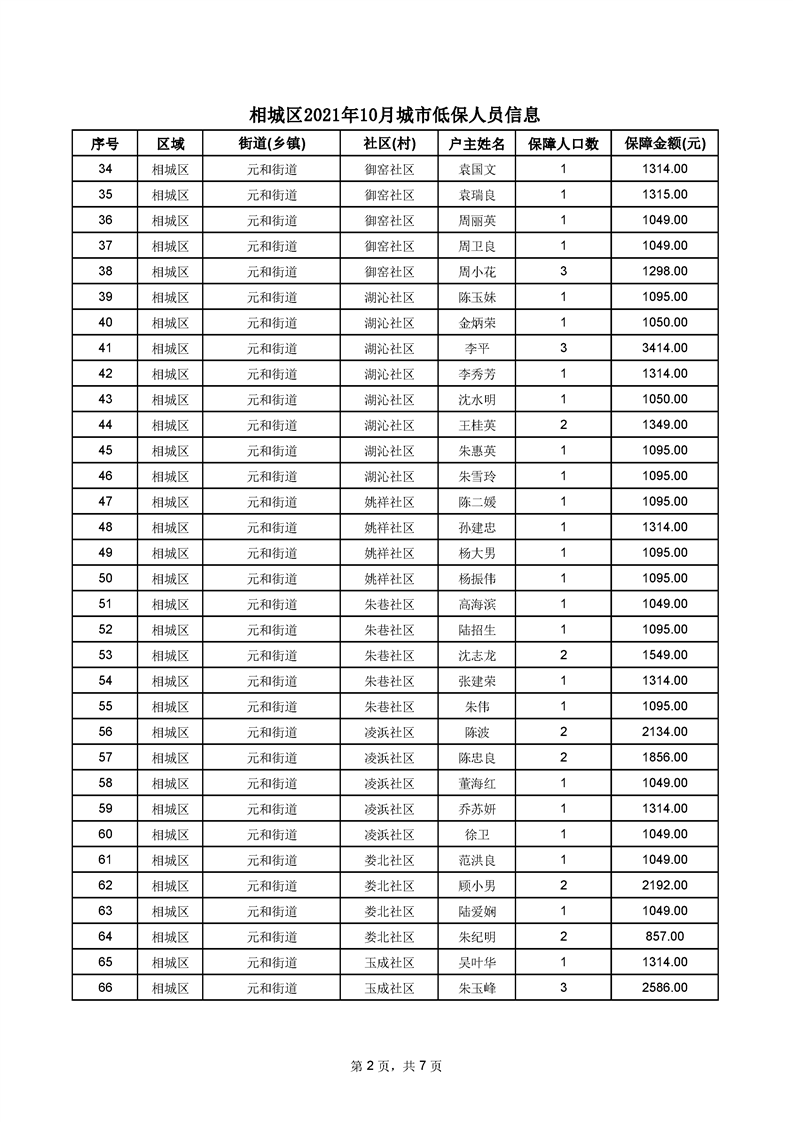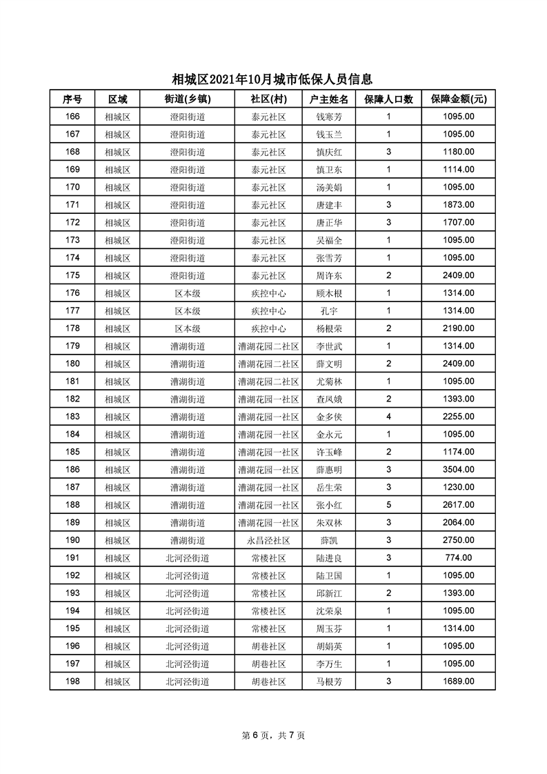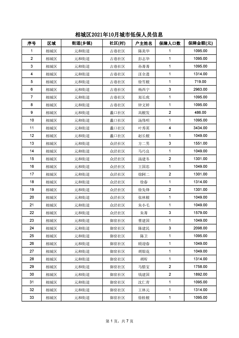 相城區(qū)2021年10月城市低保人員信息