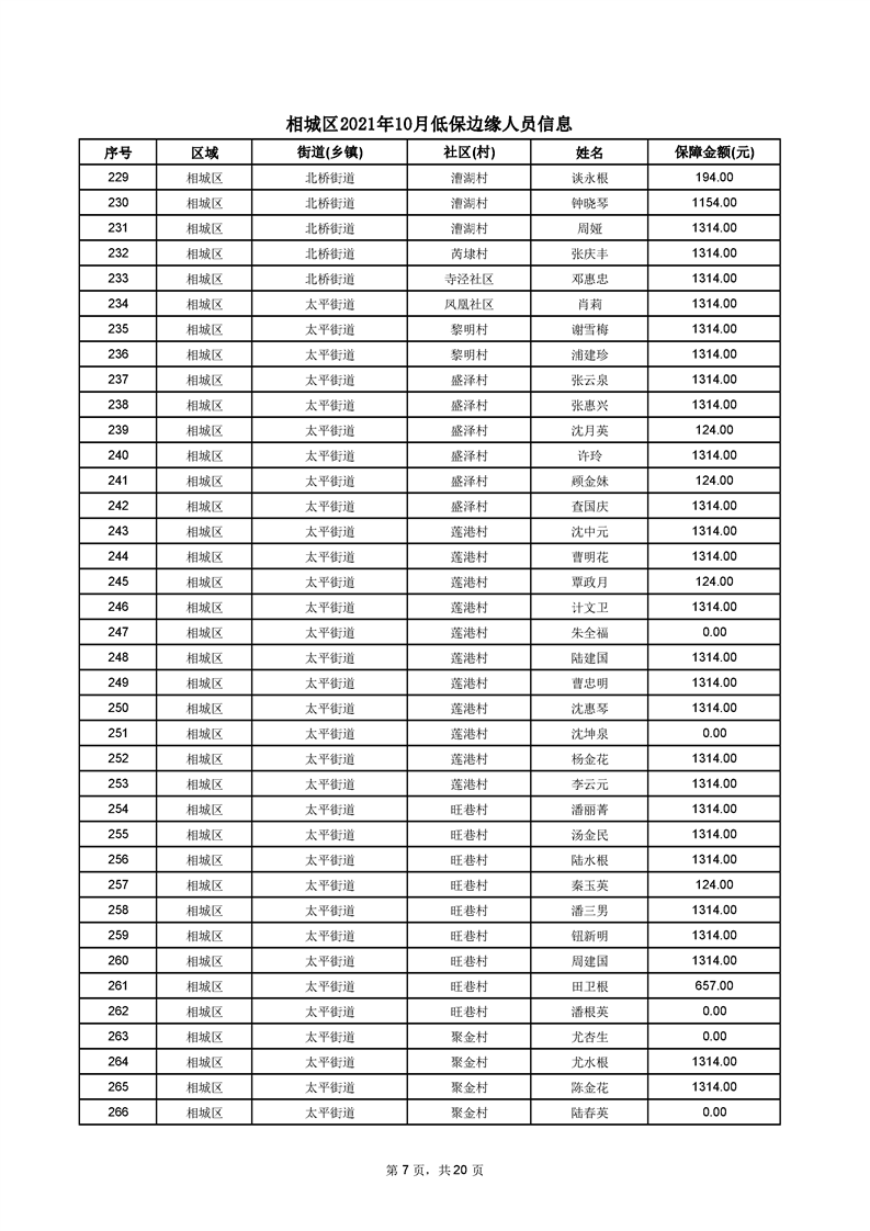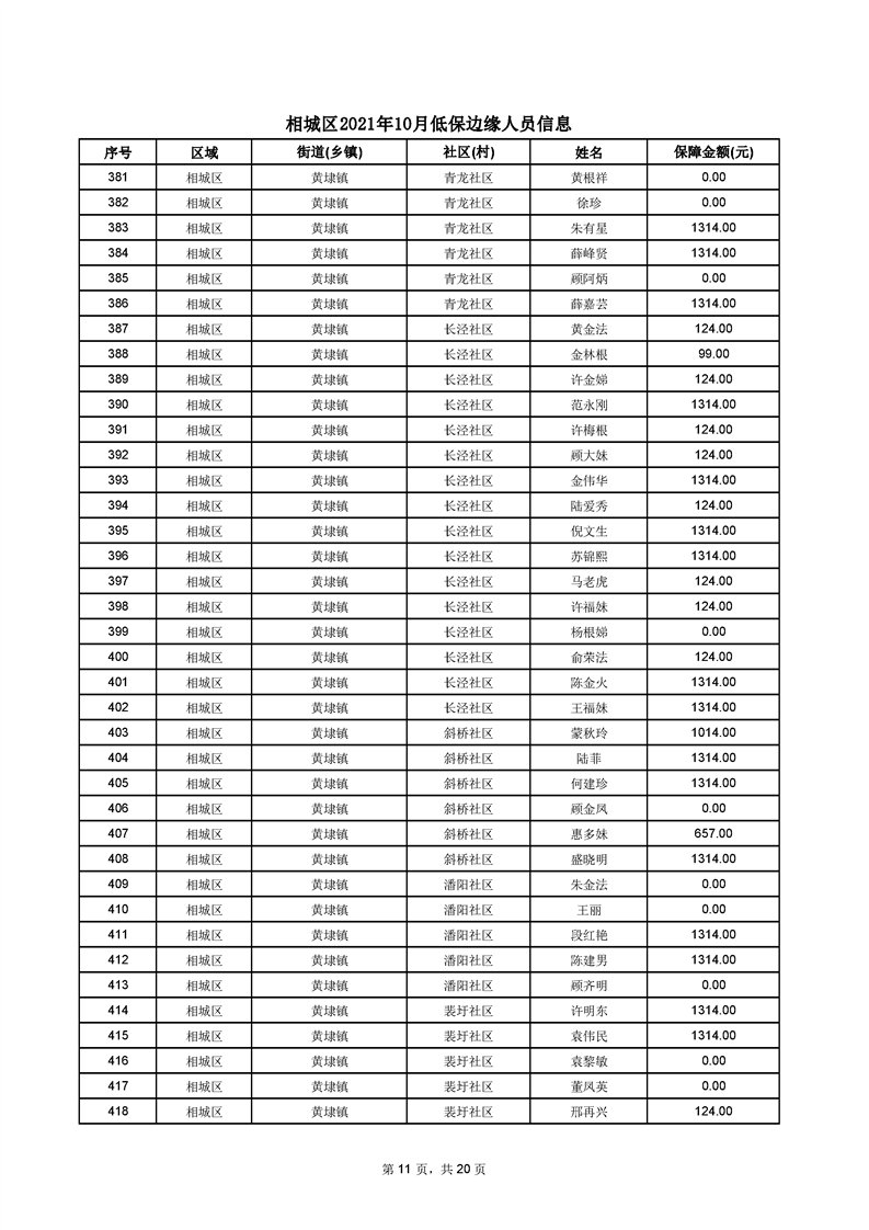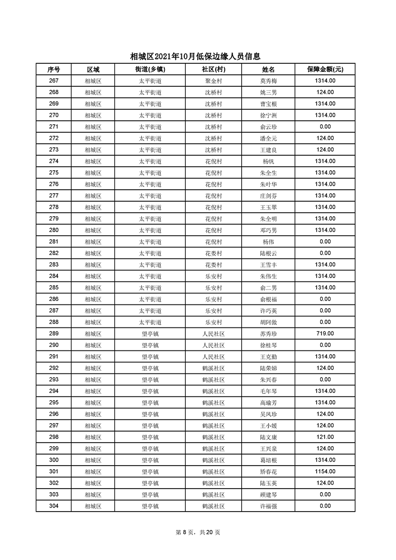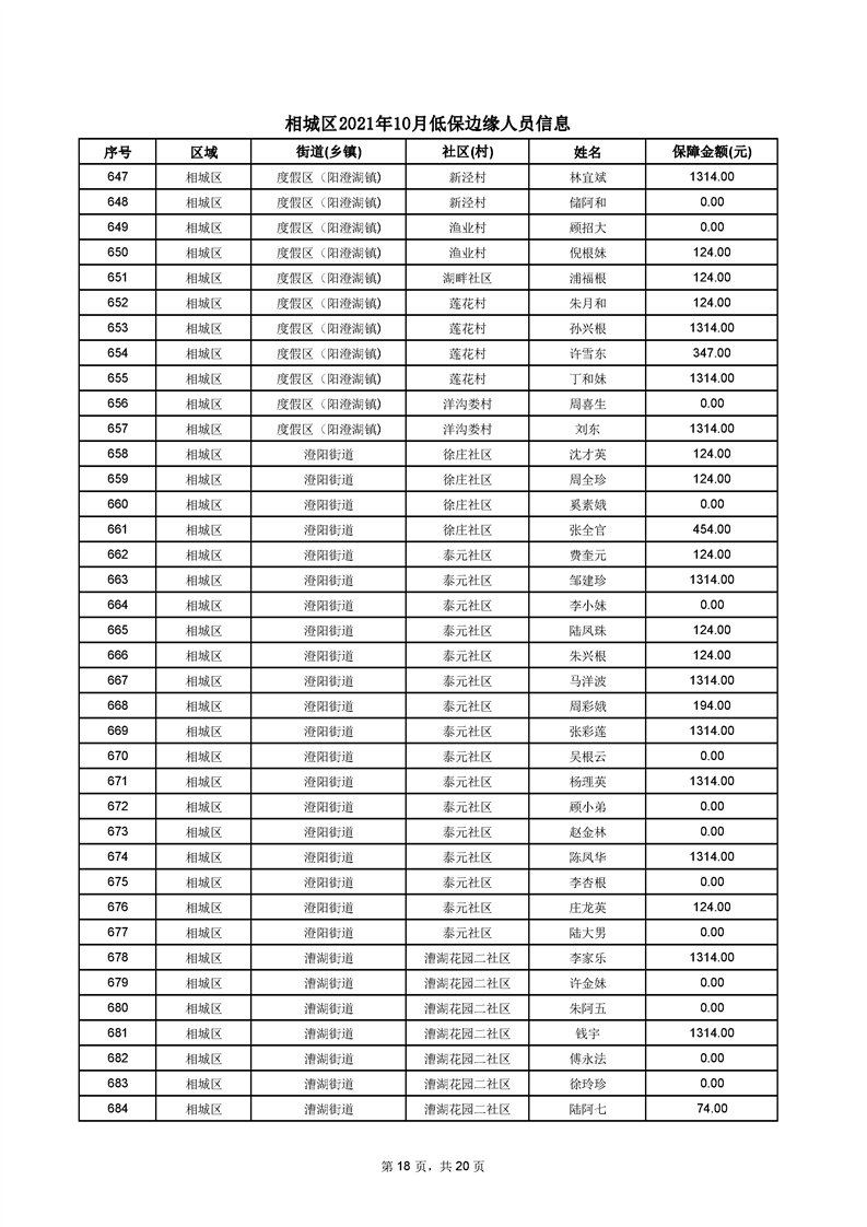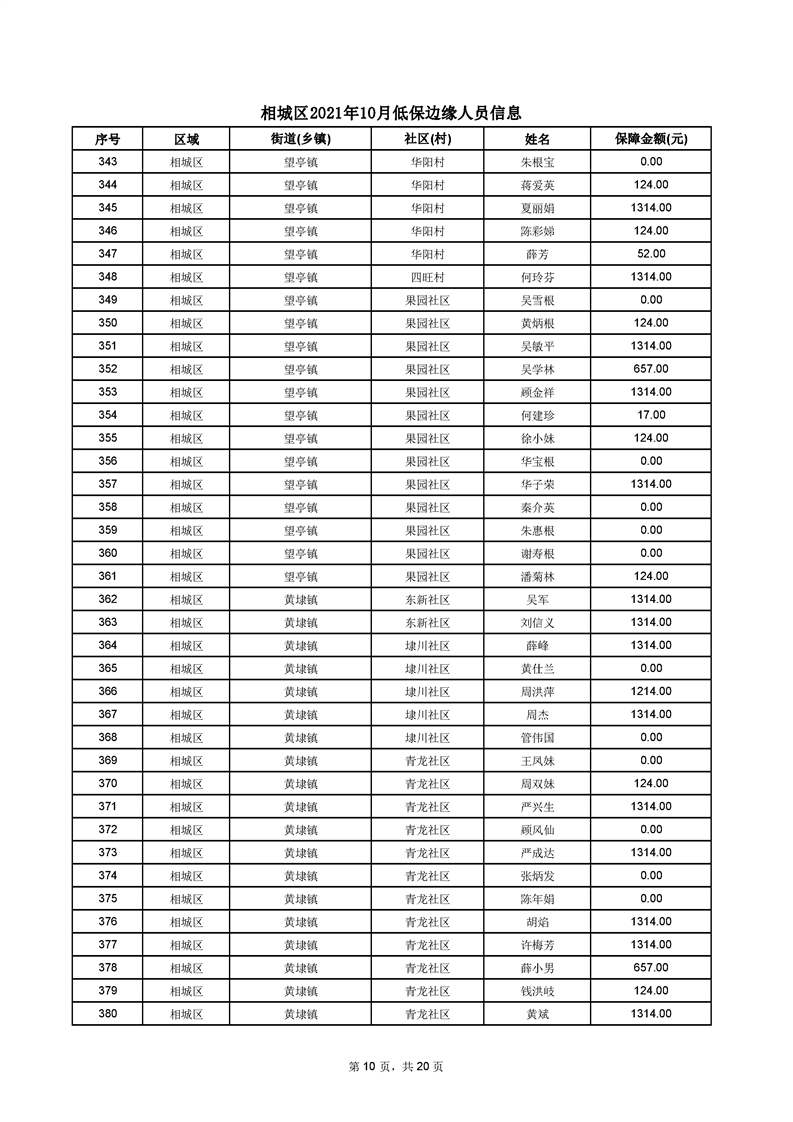 相城區(qū)2021年10月低保邊緣人員信息