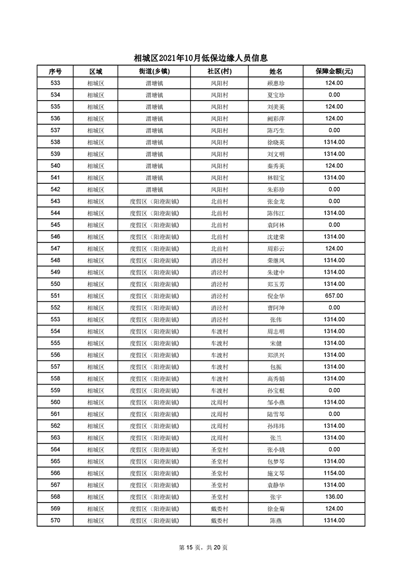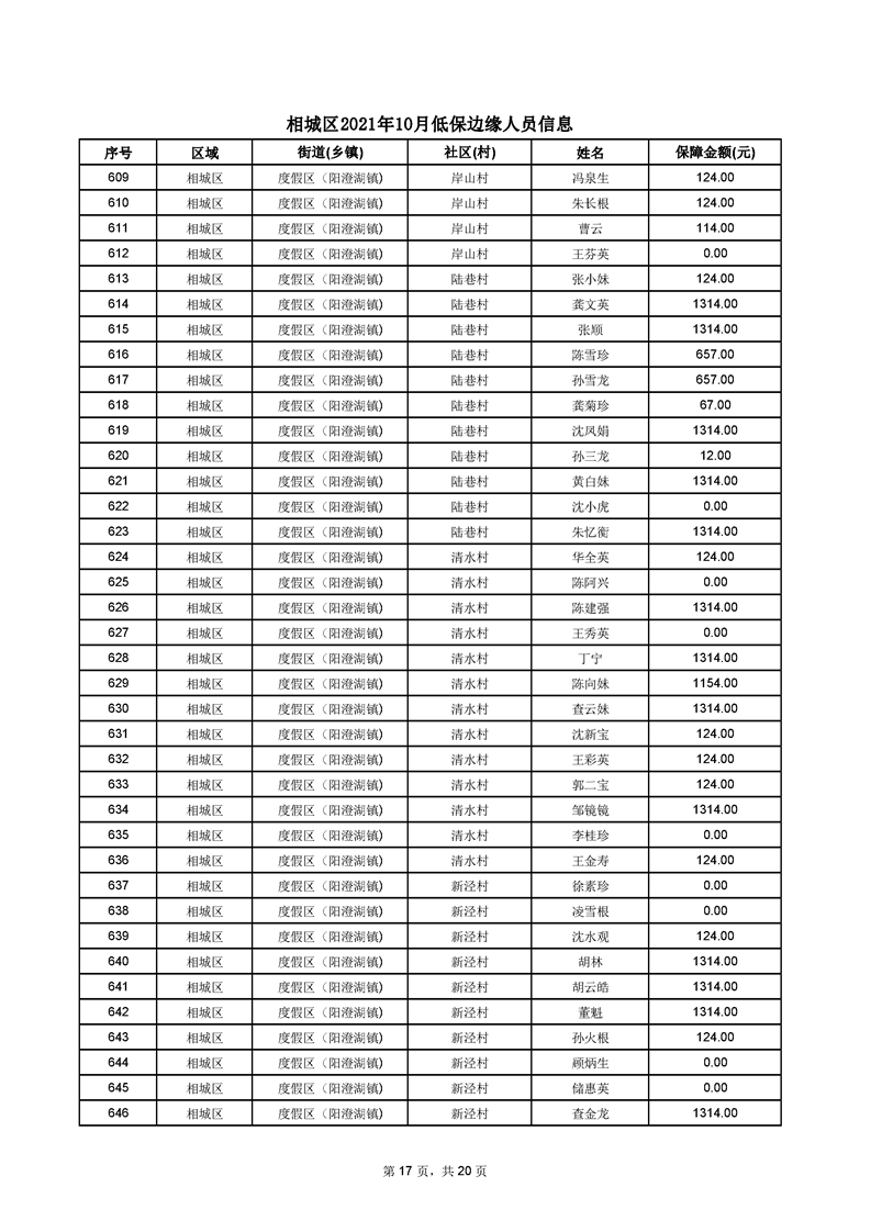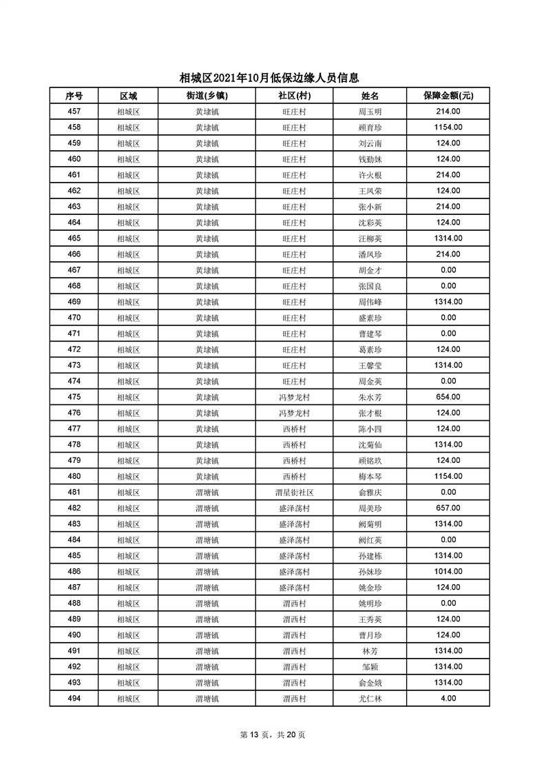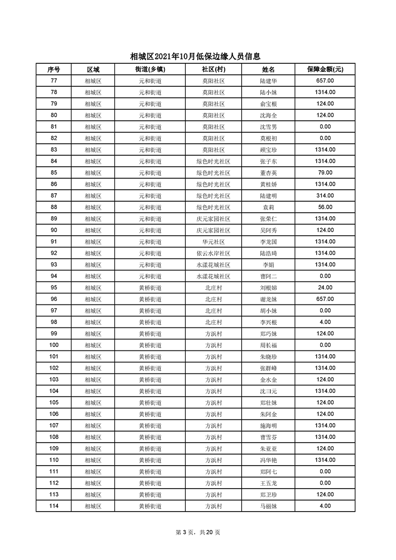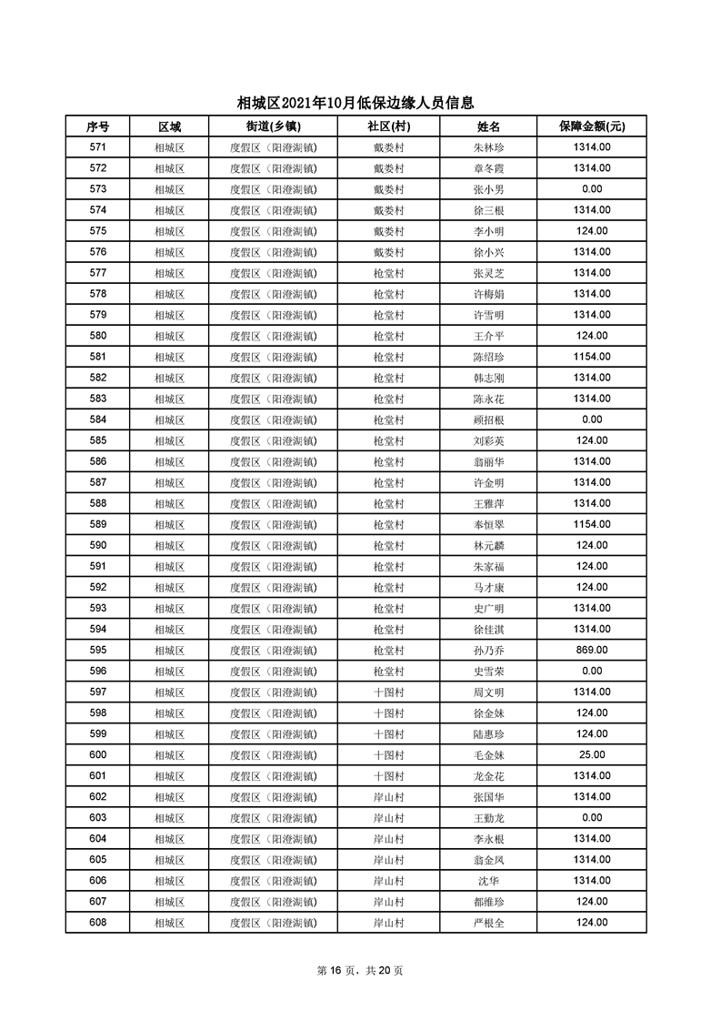 相城區(qū)2021年10月低保邊緣人員信息