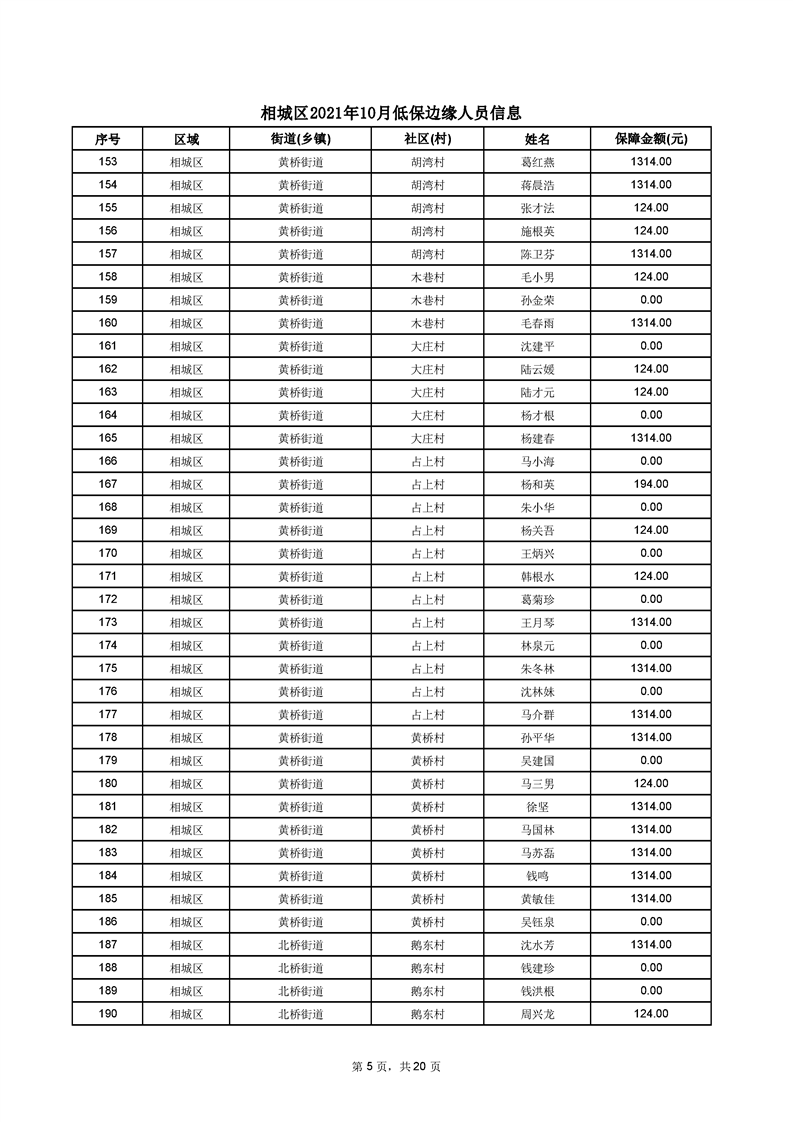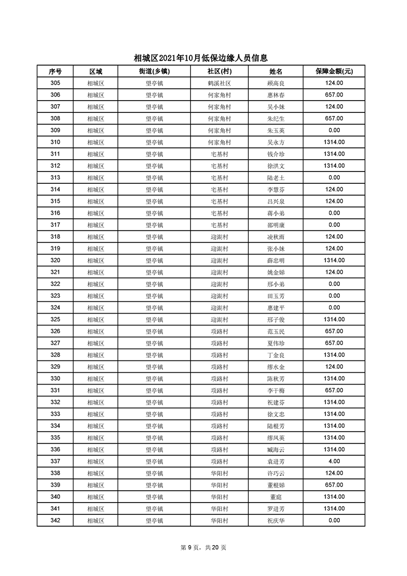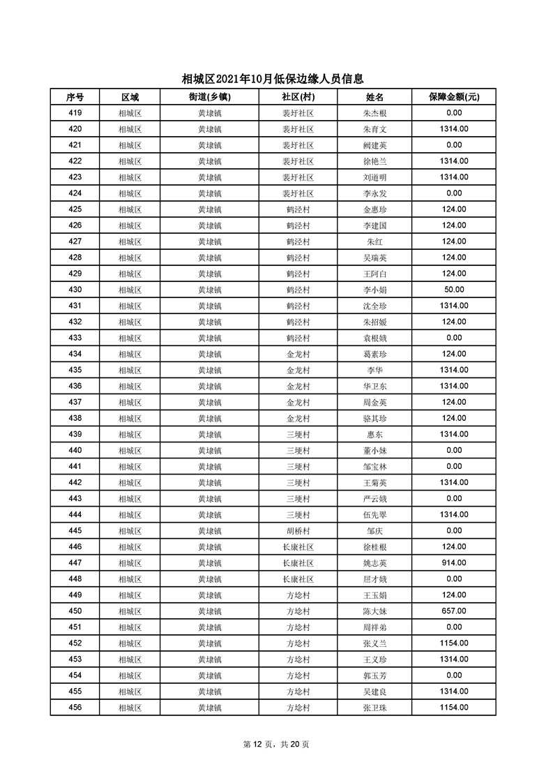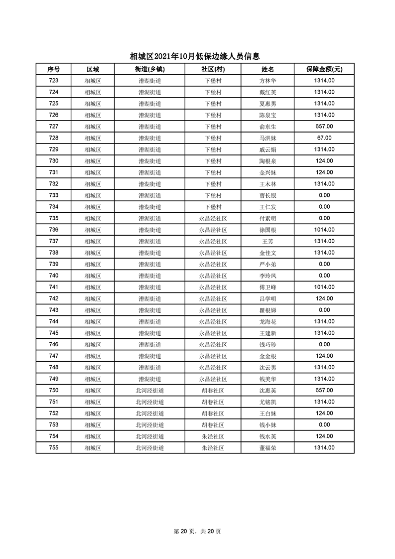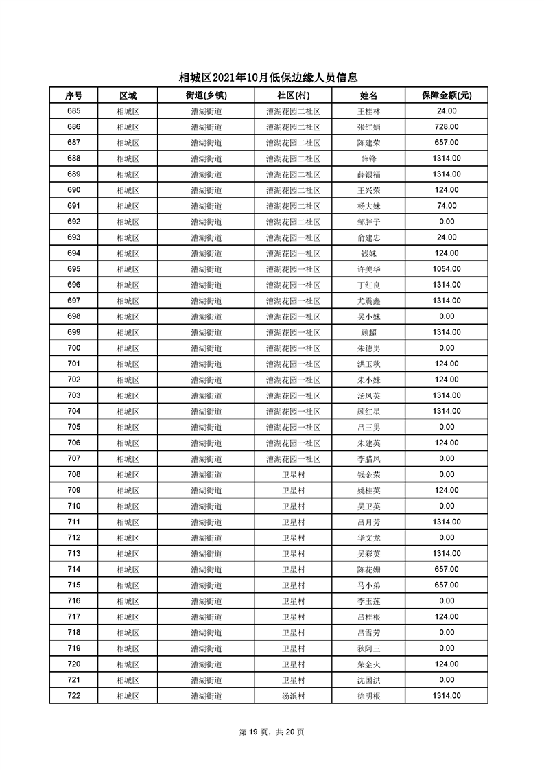 相城區(qū)2021年10月低保邊緣人員信息