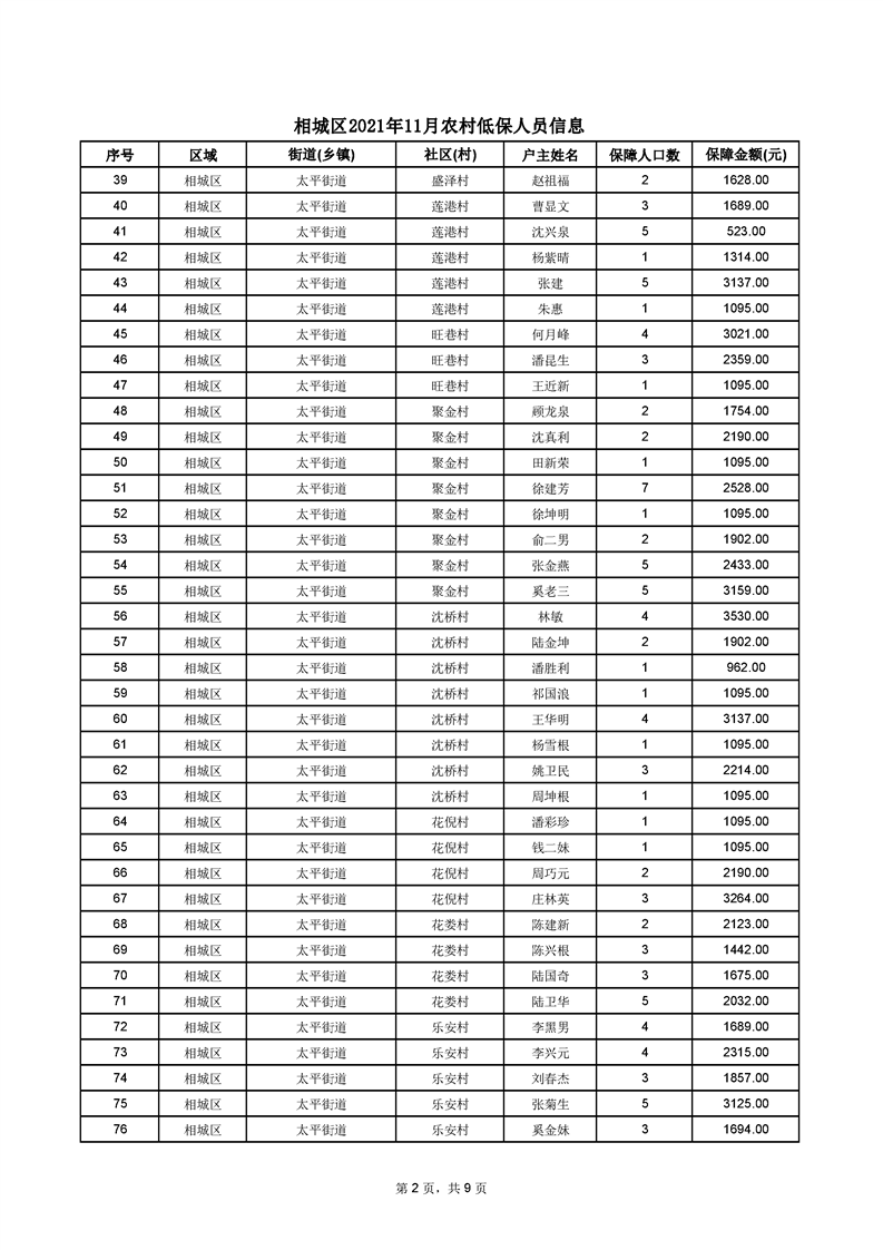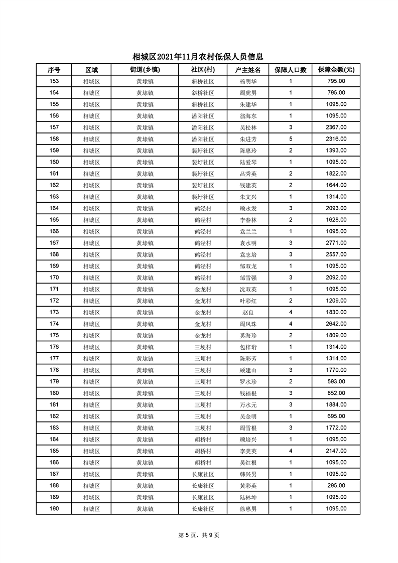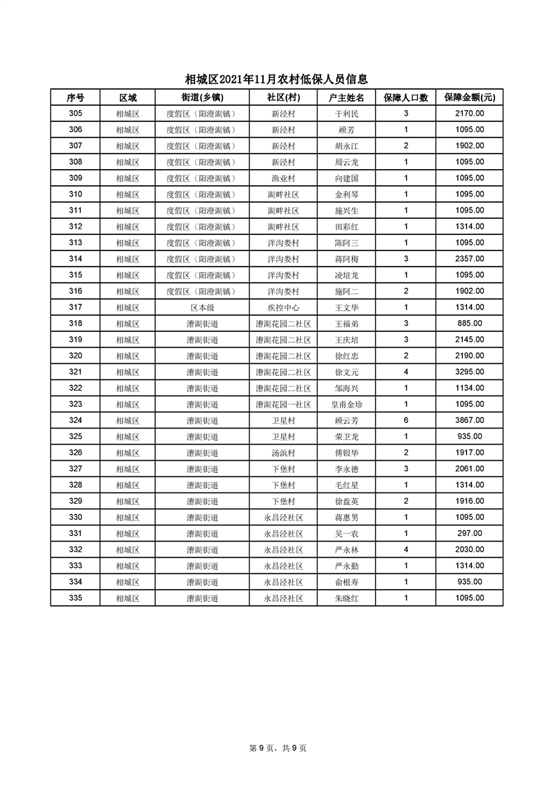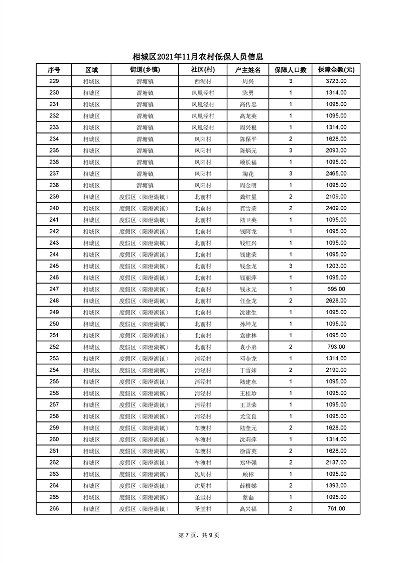 相城區(qū)2021年11月農(nóng)村低保人員信息