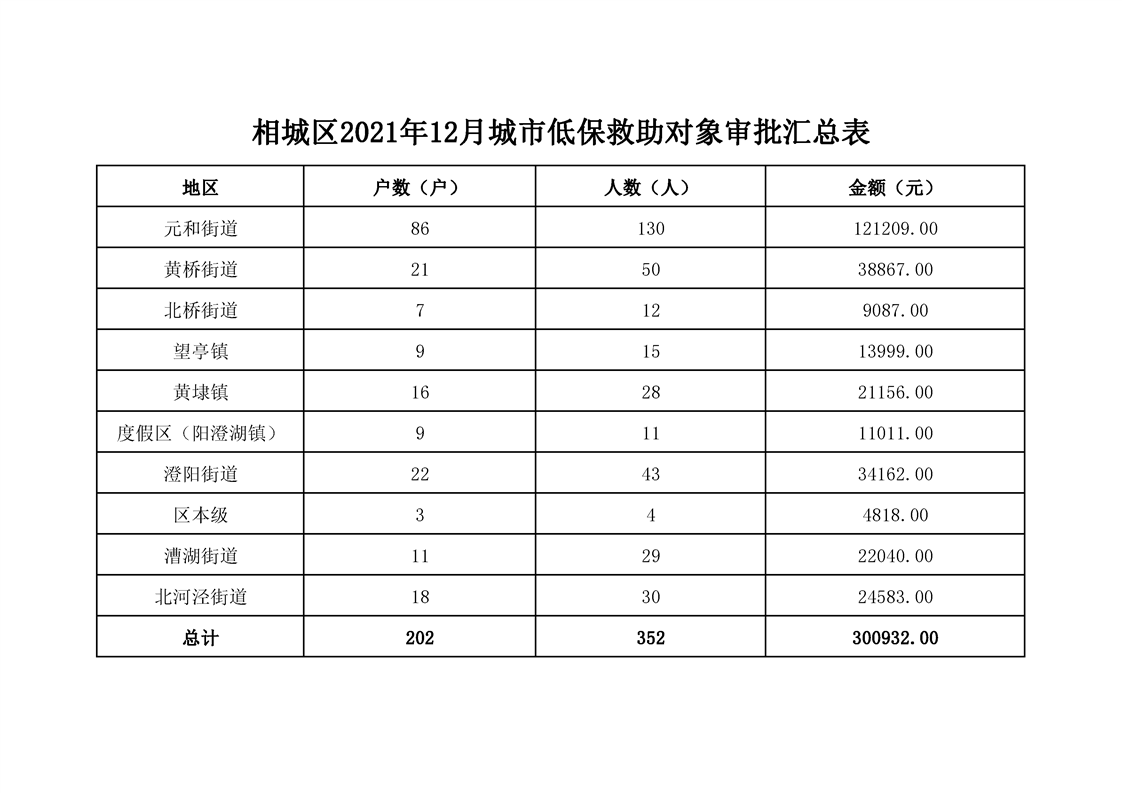 相城區(qū)2021年12月城市低保救助對象審批匯總表