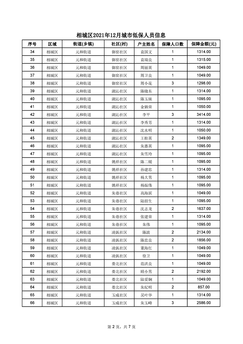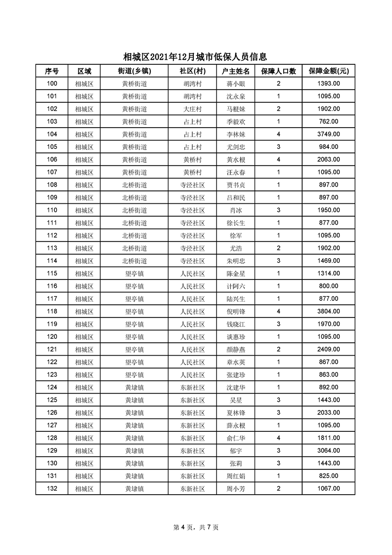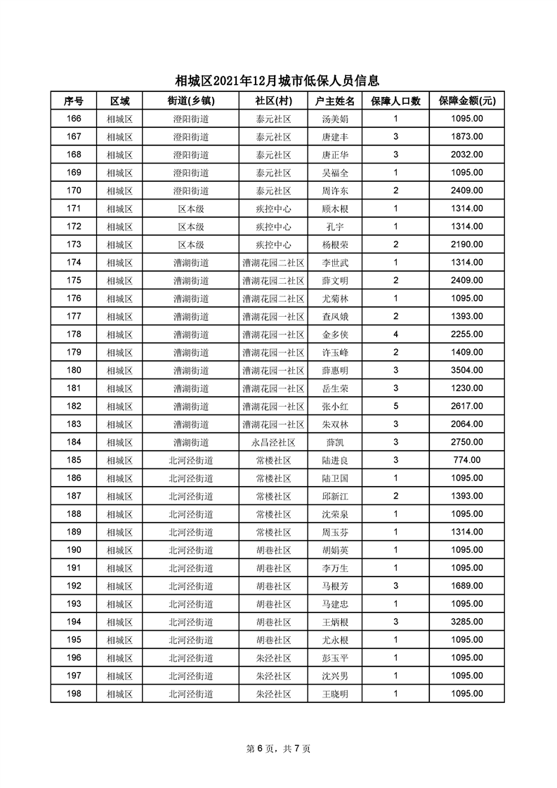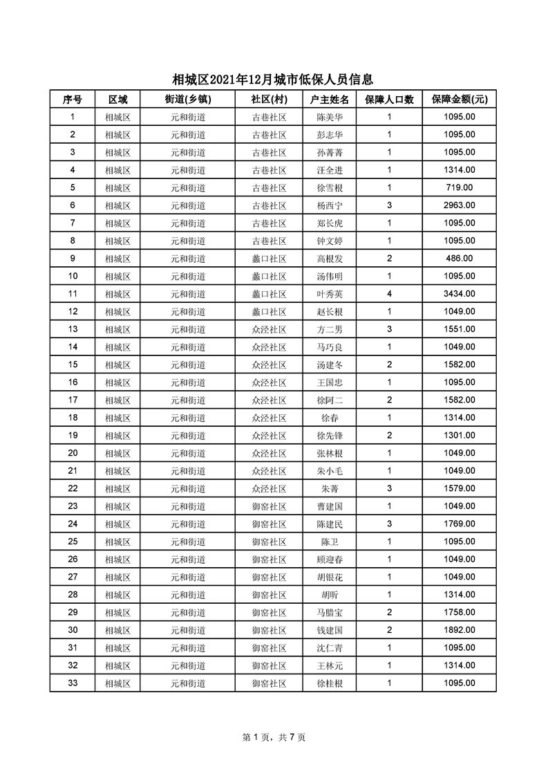 相城區(qū)2021年12月城市低保人員信息