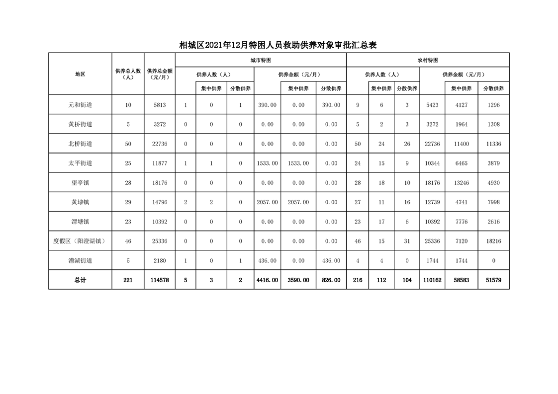 相城區(qū)2021年12月特困人員救助供養(yǎng)對象審批匯總表