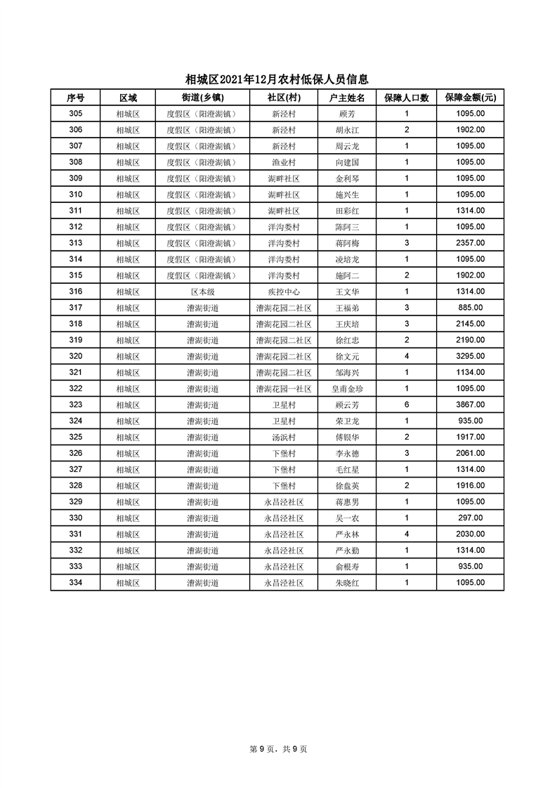相城區(qū)2021年12月農(nóng)村低保人員信息