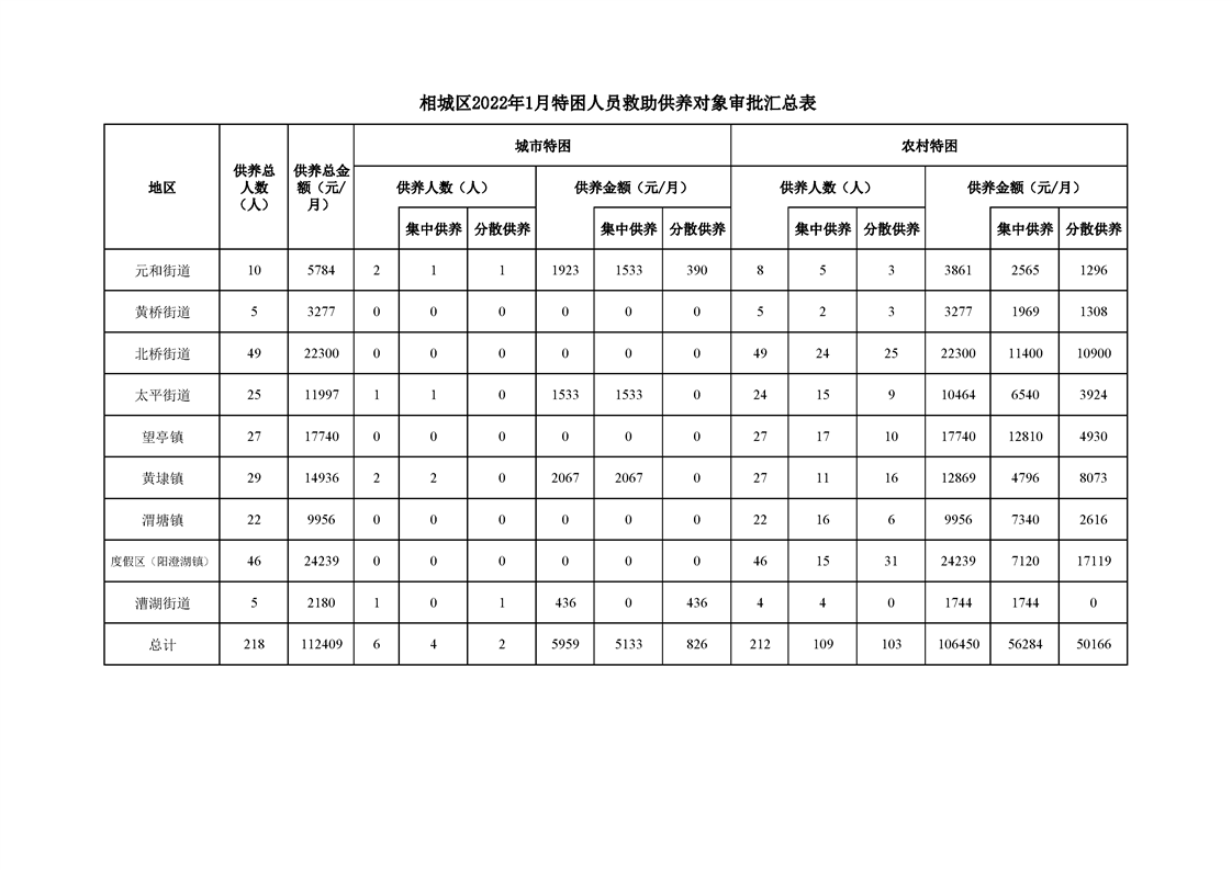 相城區(qū)2022年1月特困人員救助供養(yǎng)對(duì)象審批匯總表