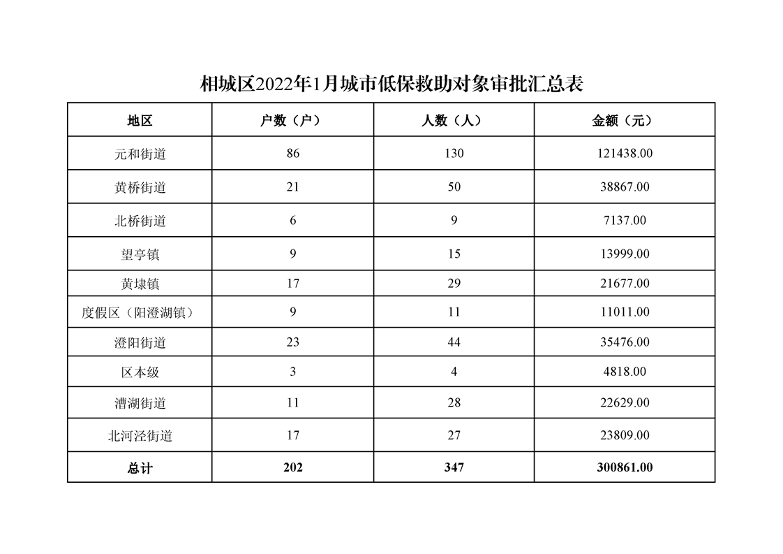 相城區(qū)2022年1月城市低保救助對象審批匯總表