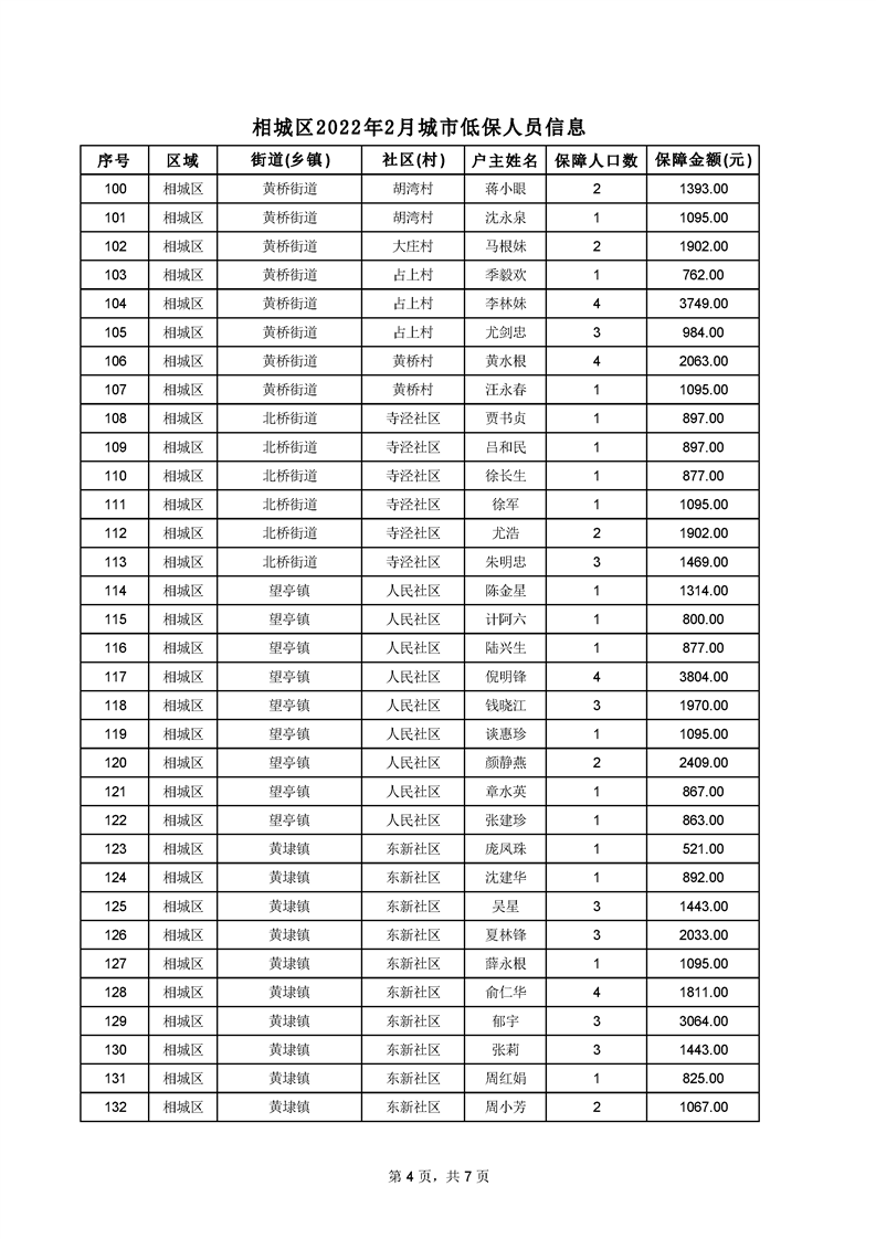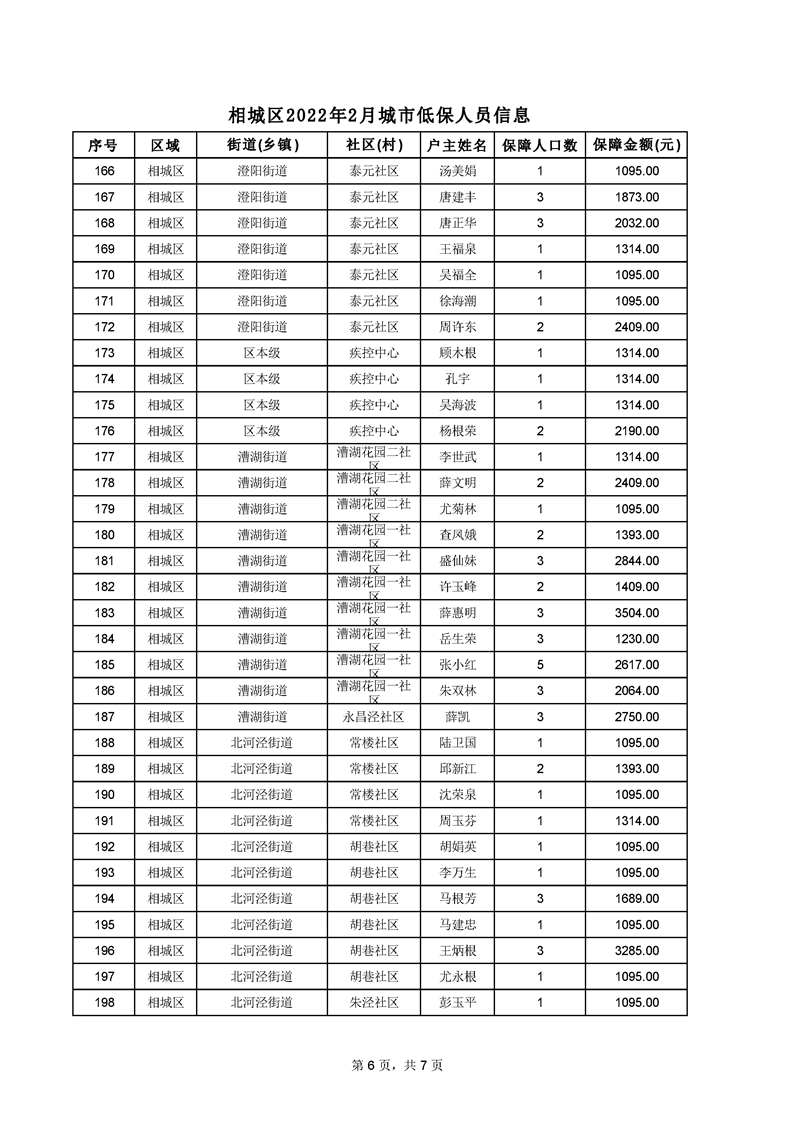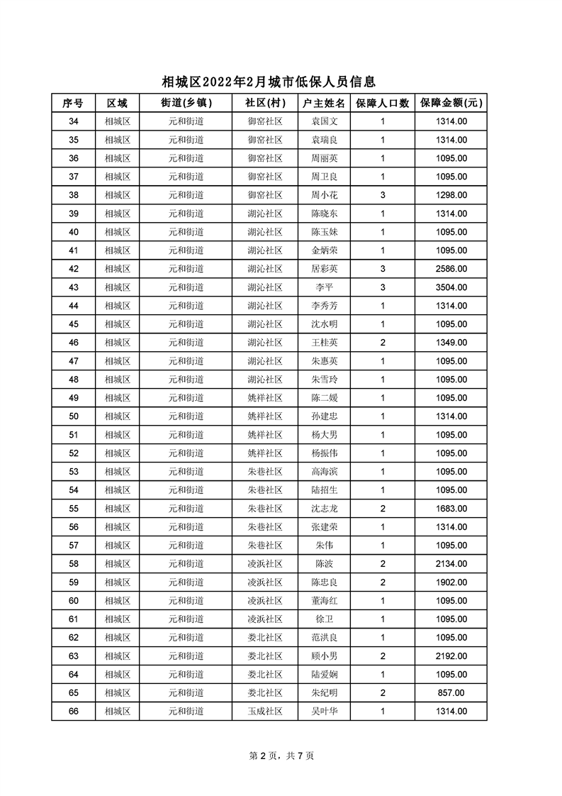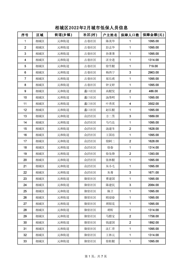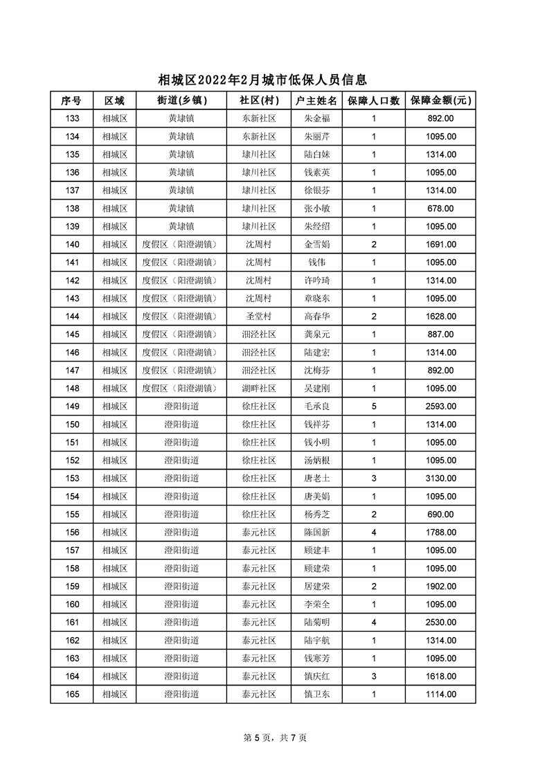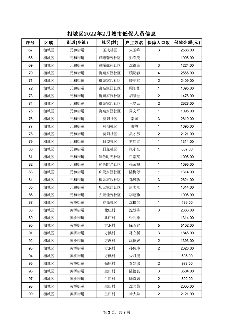 相城區(qū)2022年2月城市低保人員信息
