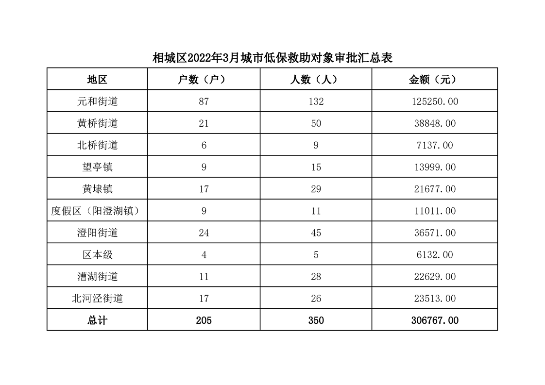 相城區(qū)2022年3月城市低保救助對象審批匯總表