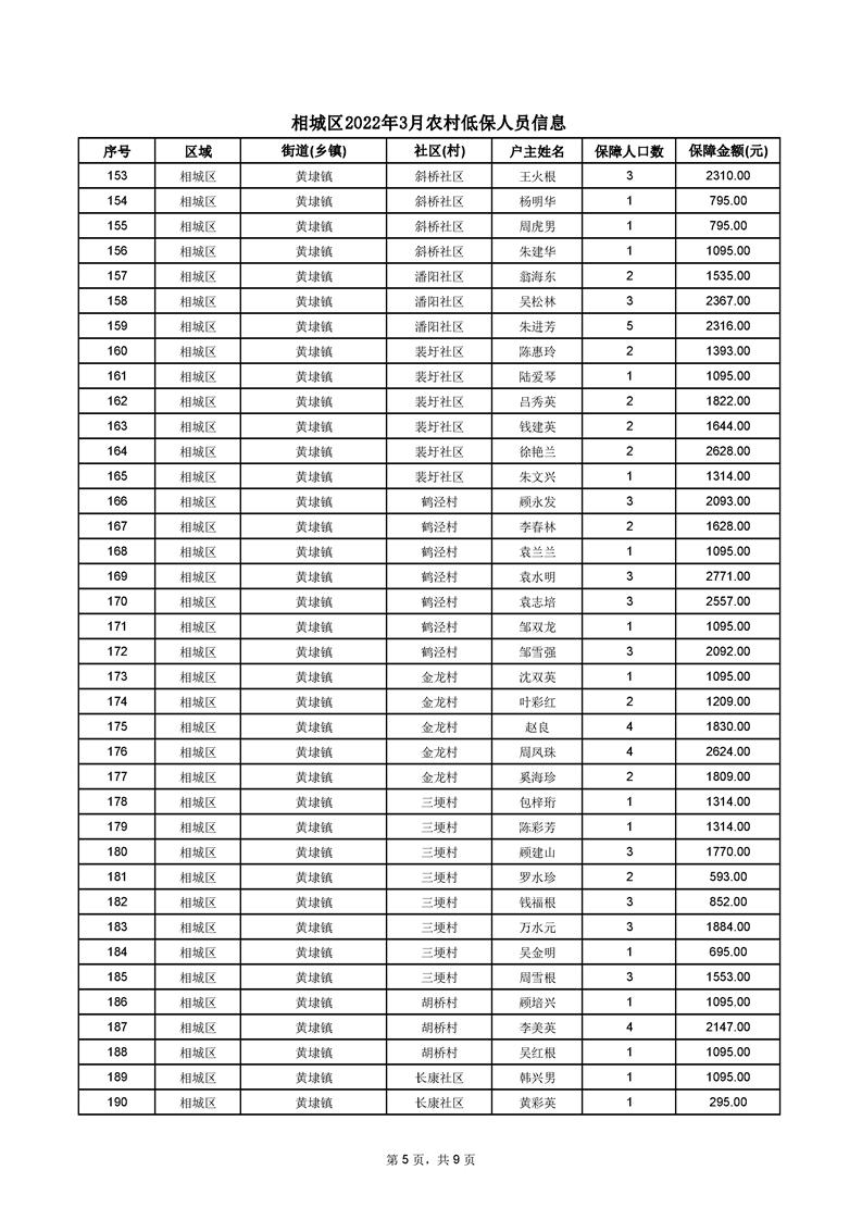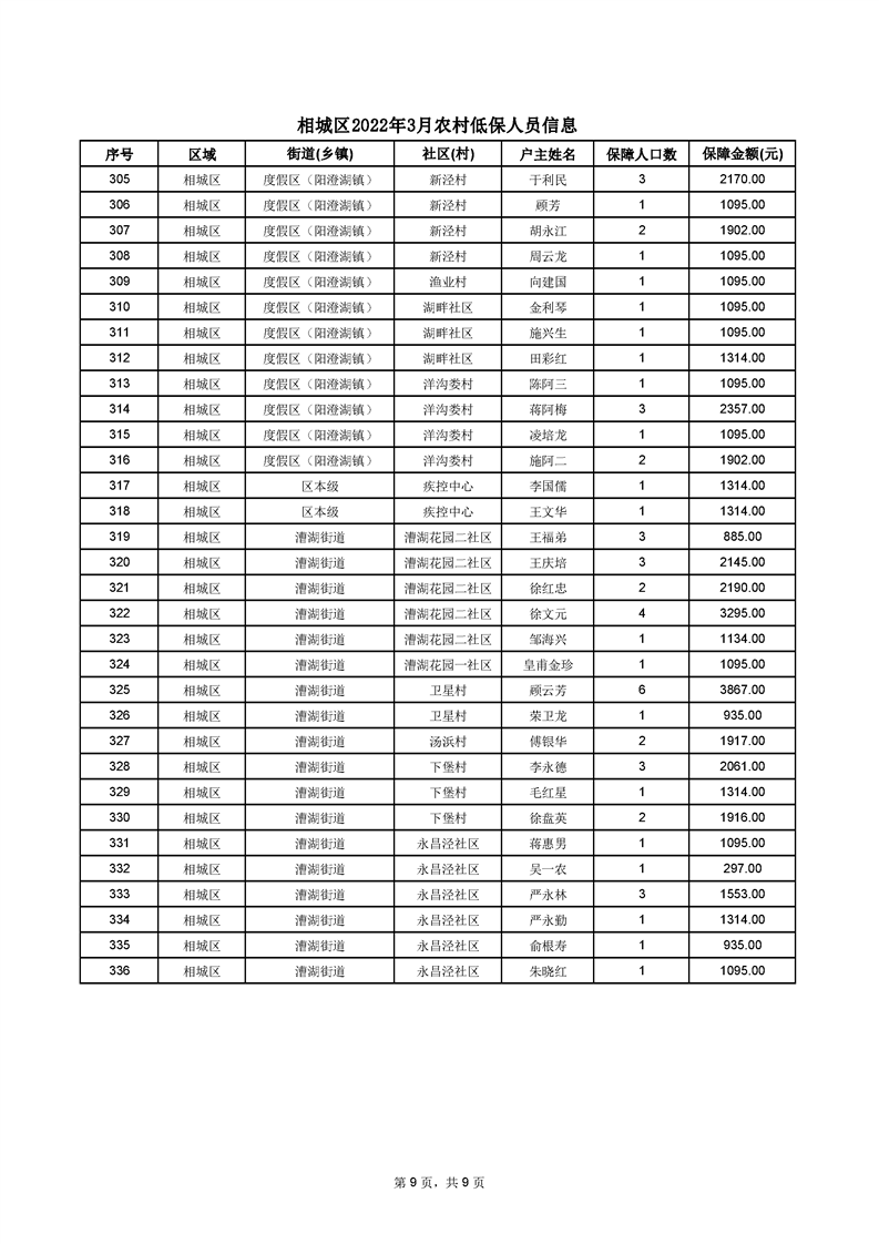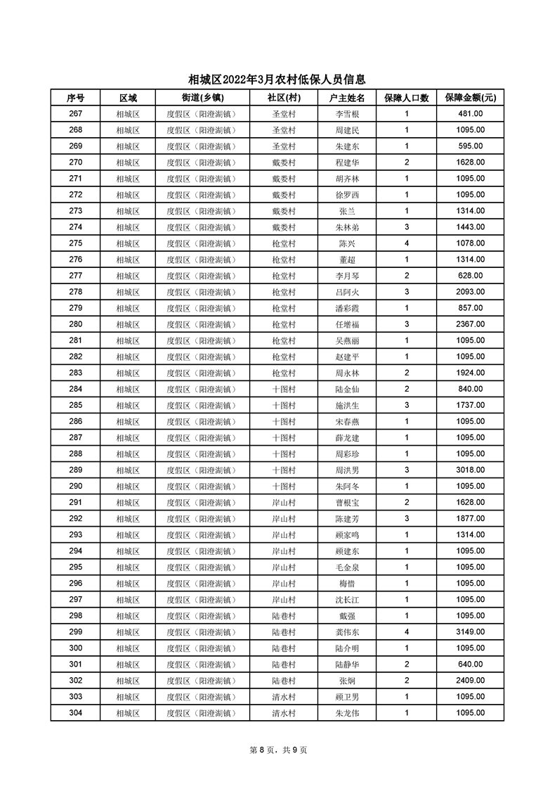相城區(qū)2022年3月農(nóng)村低保人員信息