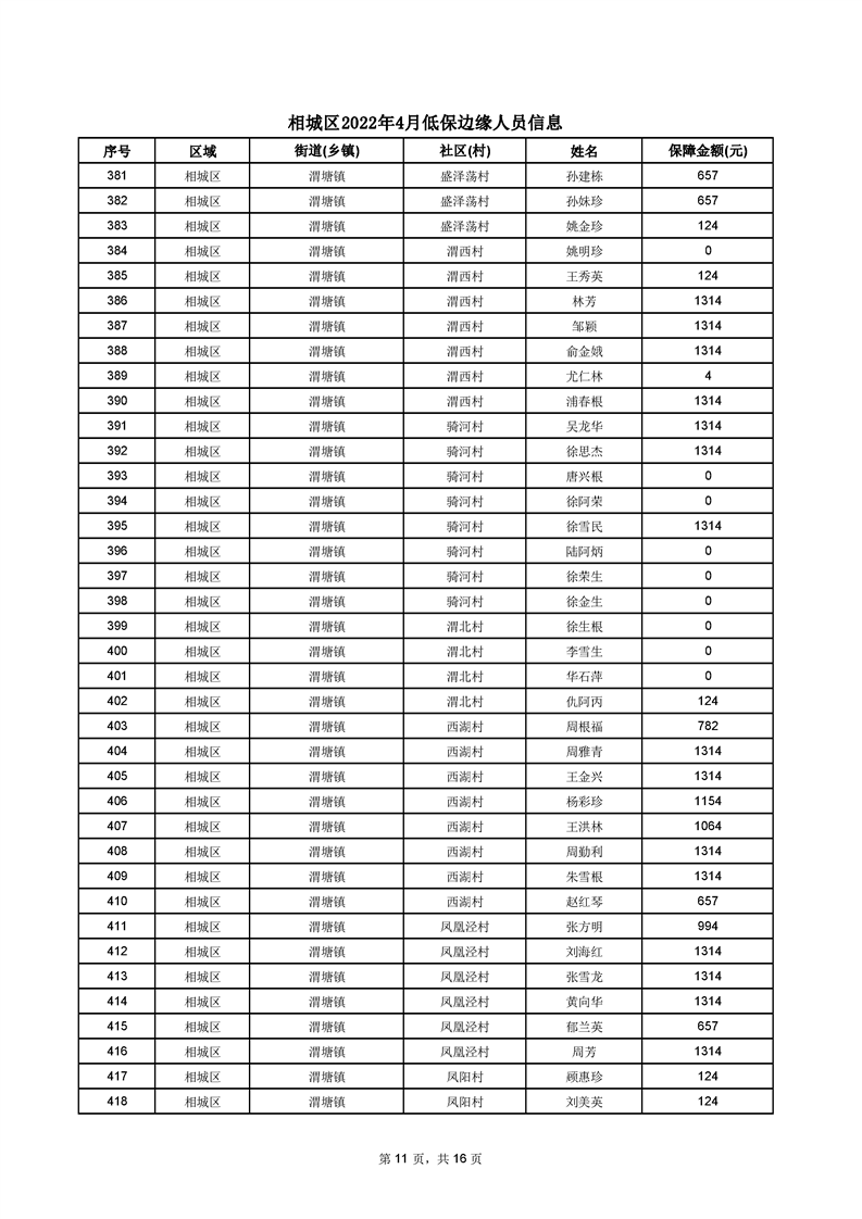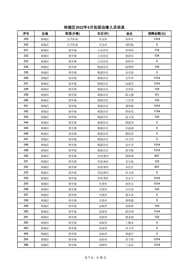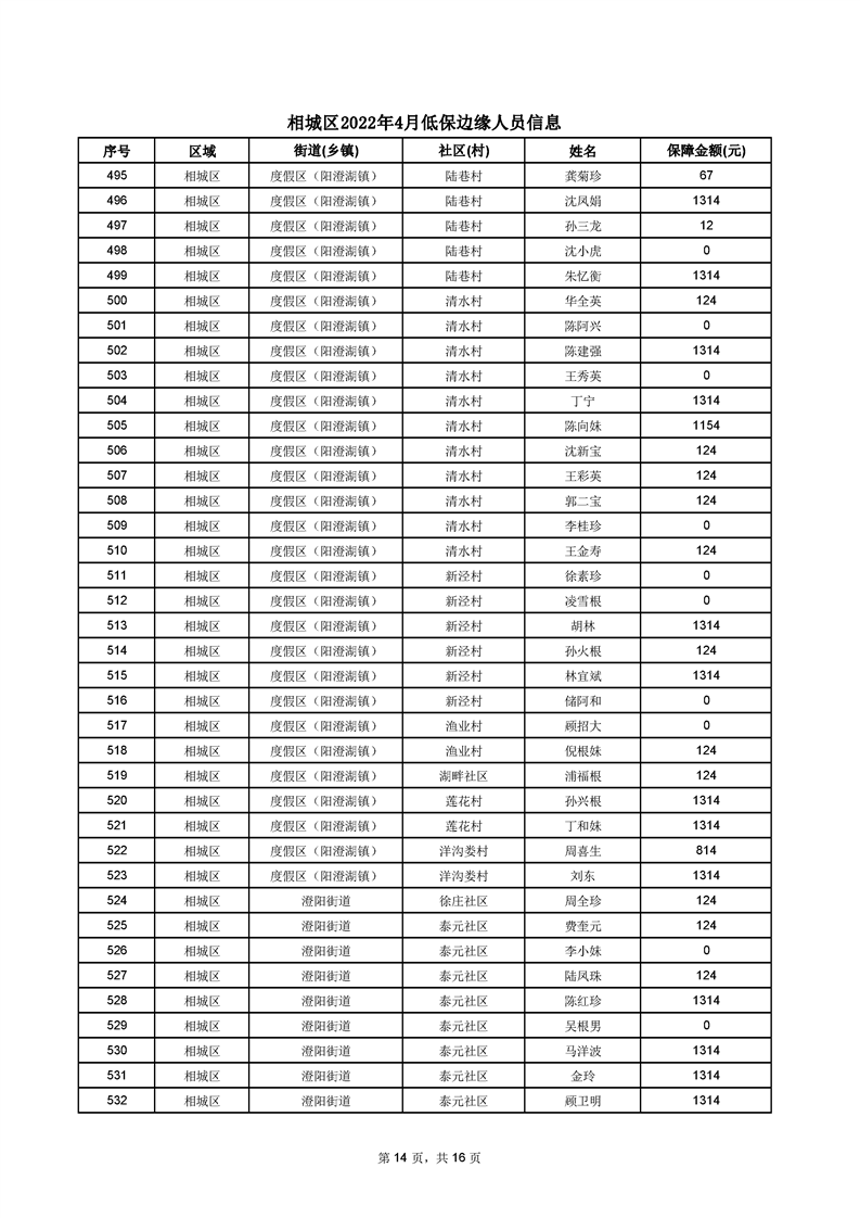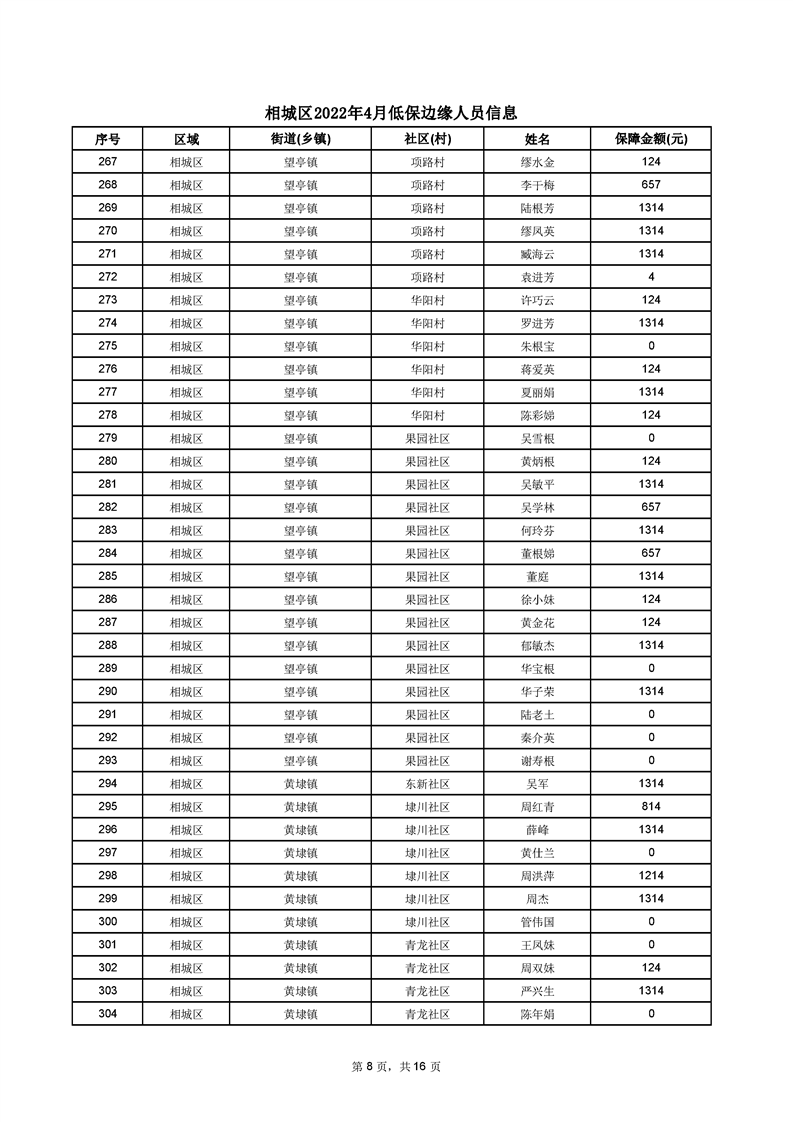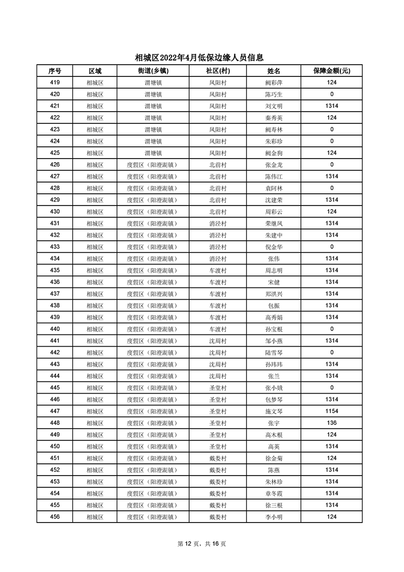 相城區(qū)2022年4月低保邊緣人員信息