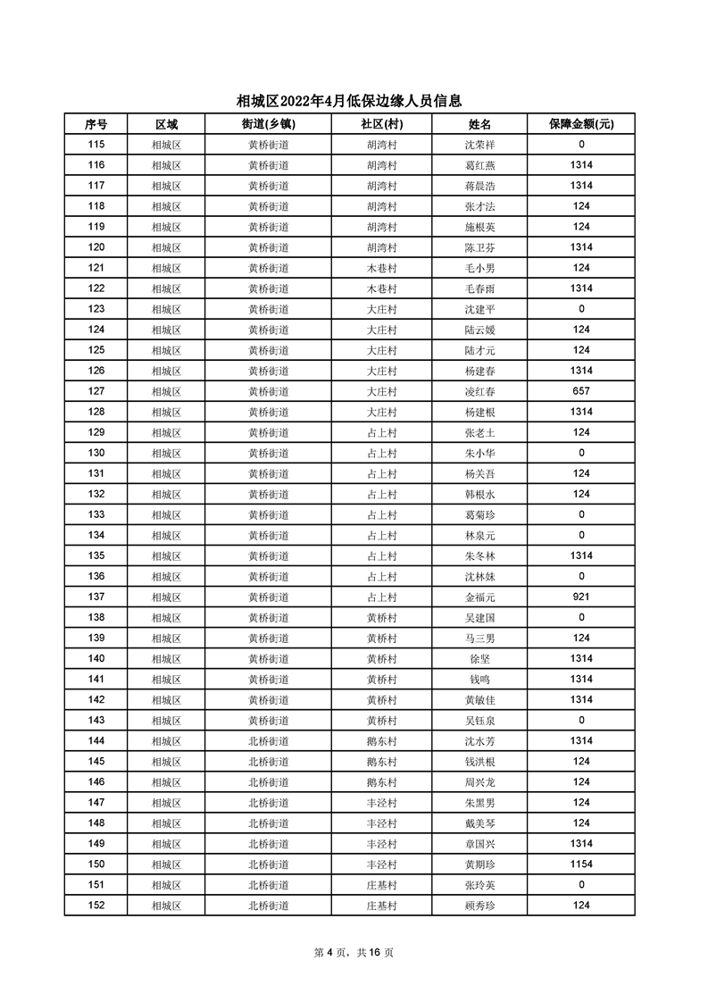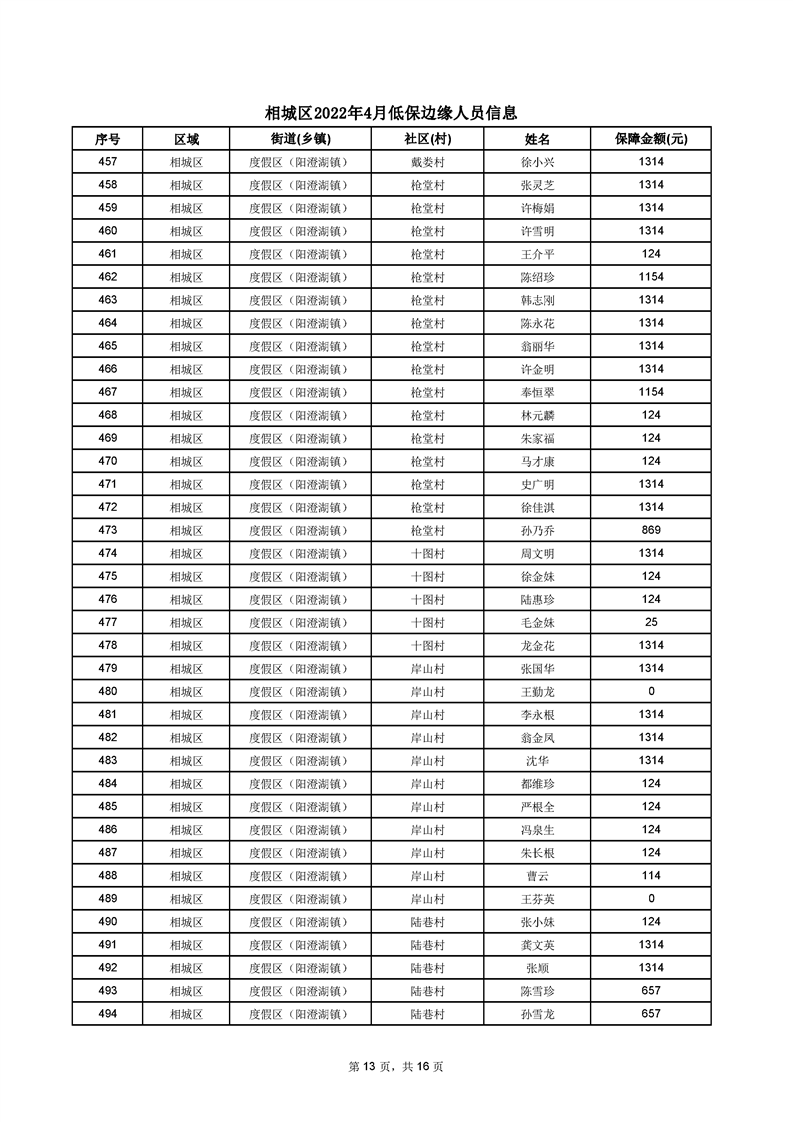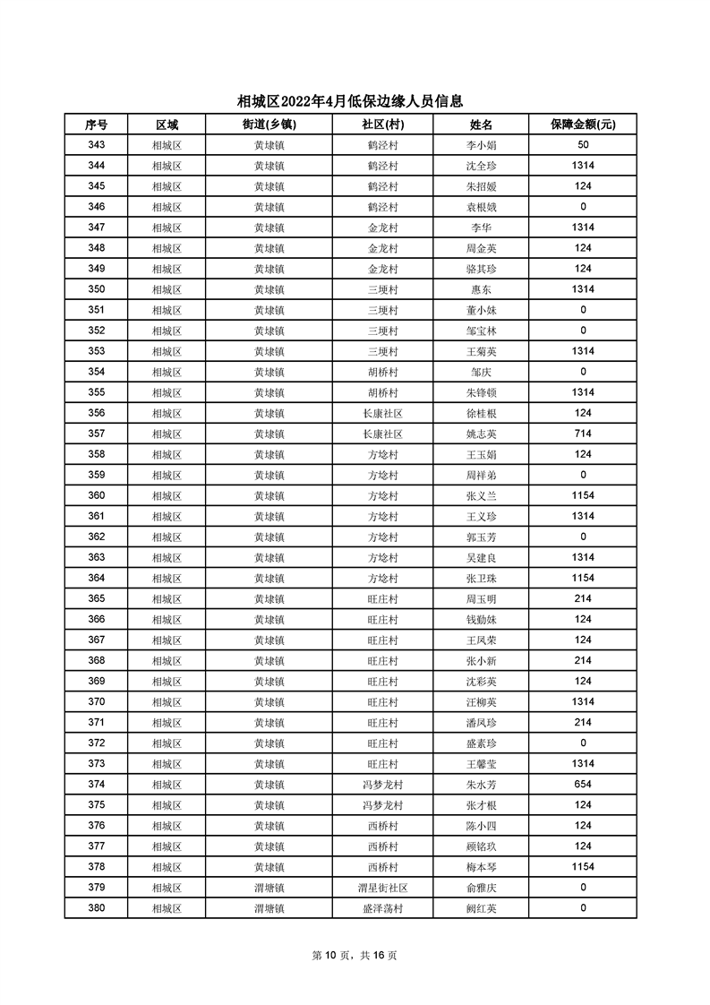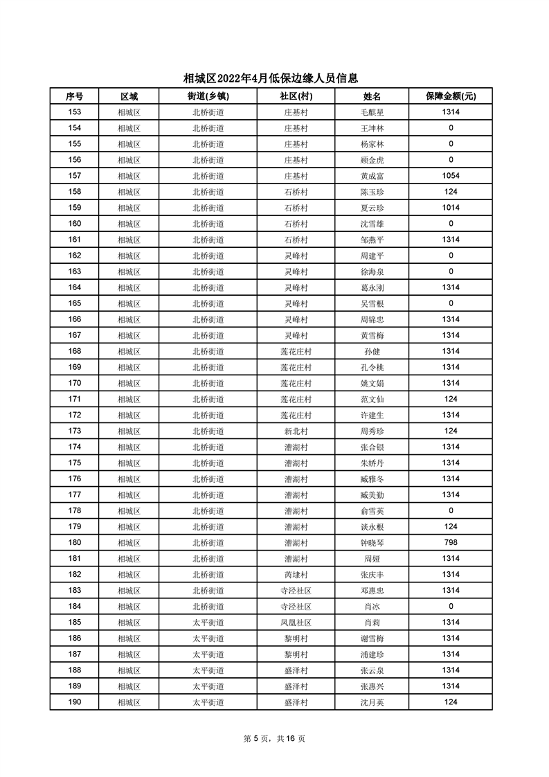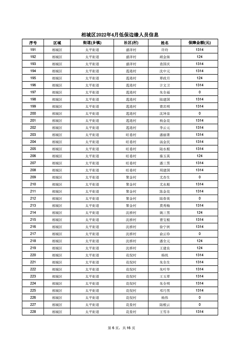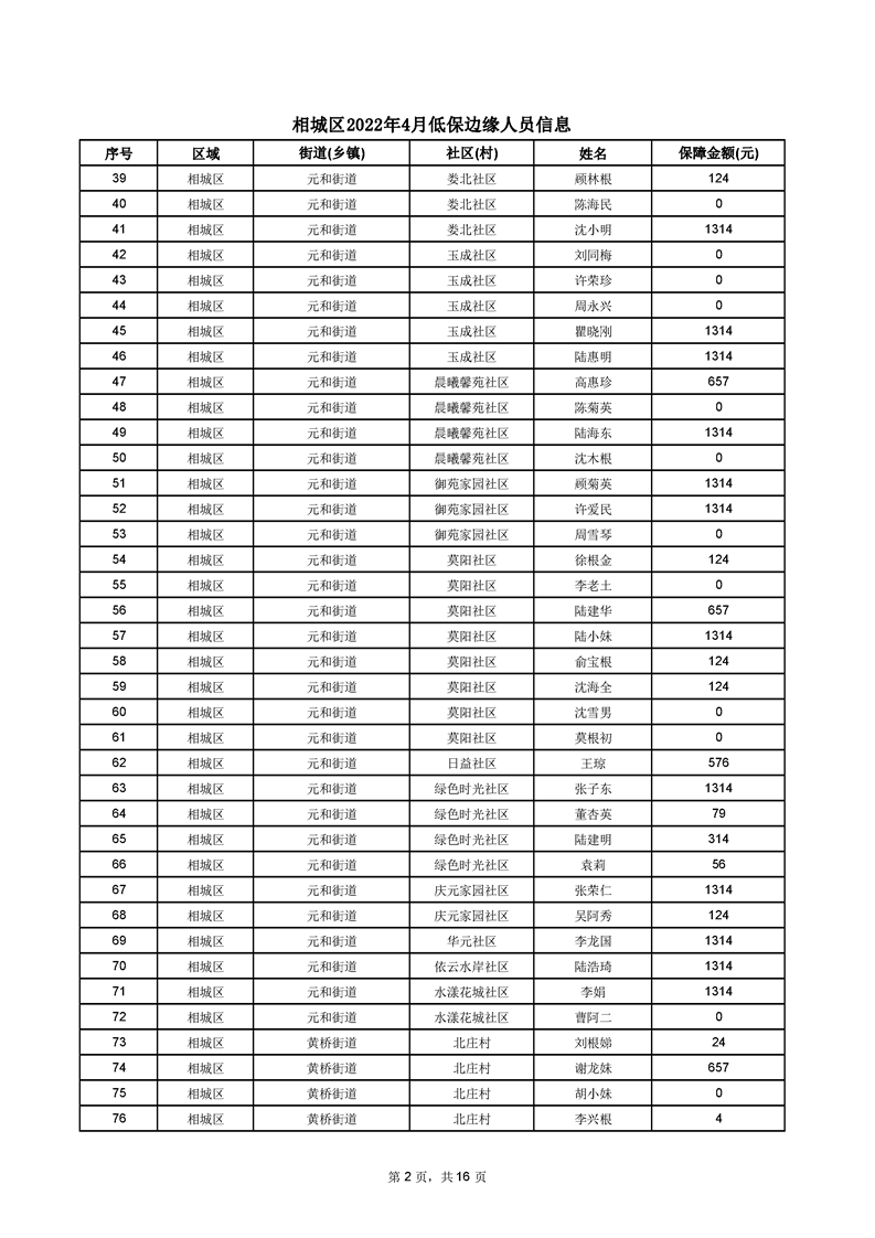 相城區(qū)2022年4月低保邊緣人員信息