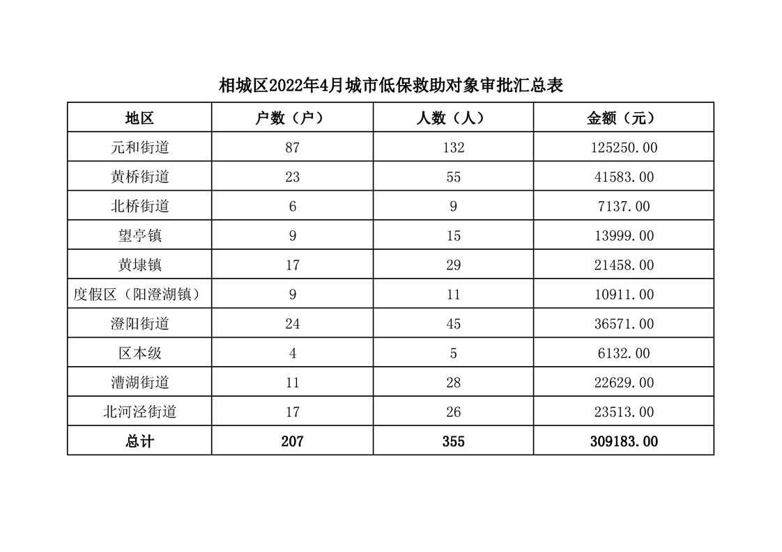 相城區(qū)2022年4月城市低保救助對象審批匯總表