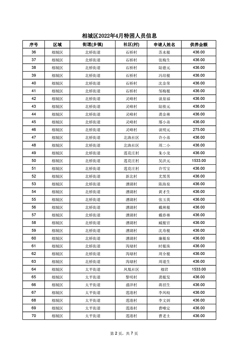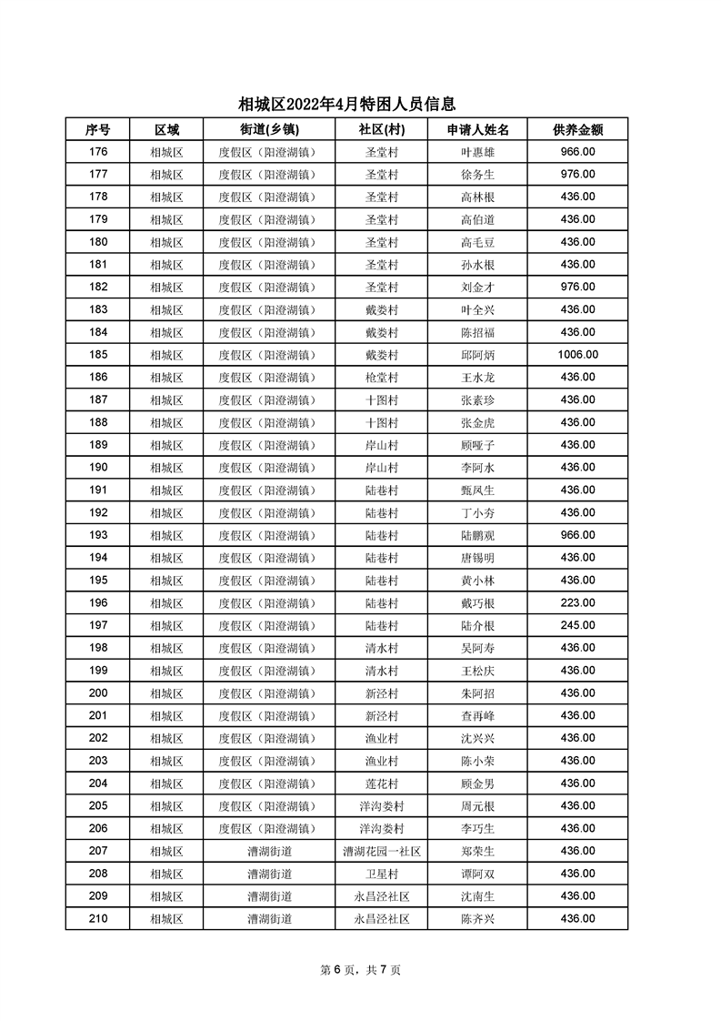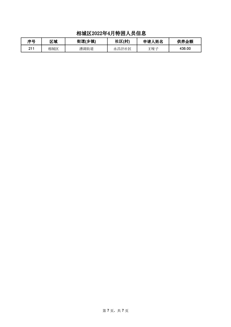 相城區(qū)2022年4月特困人員信息