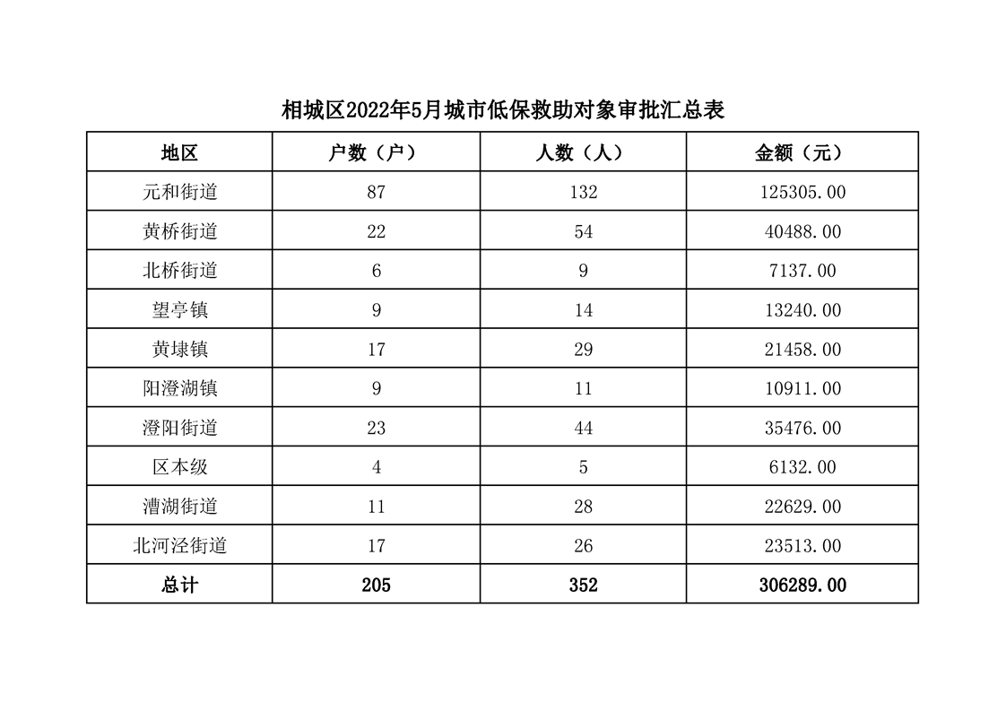 相城區(qū)2022年5月城市低保救助對象審批匯總表