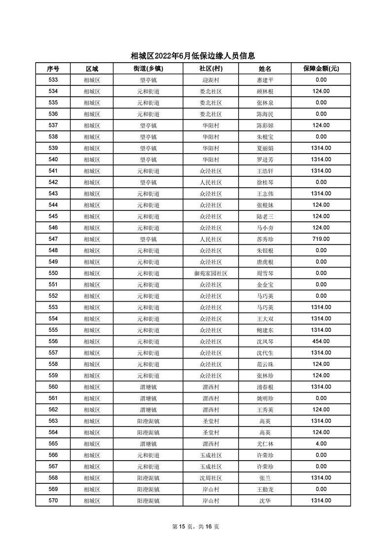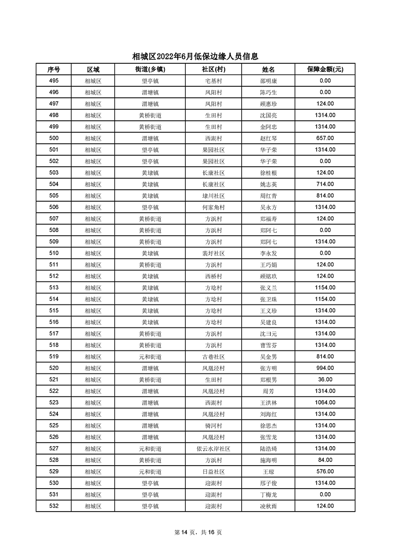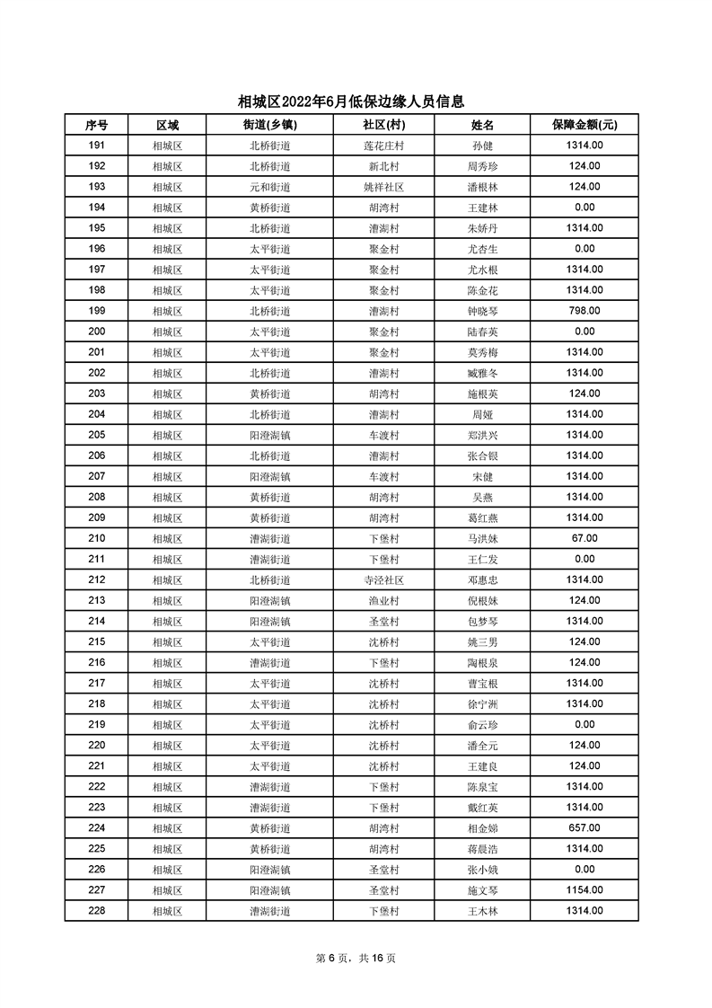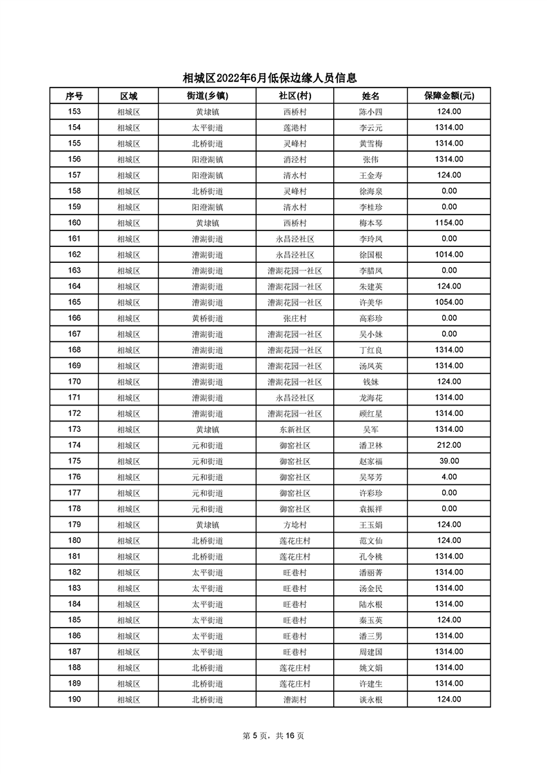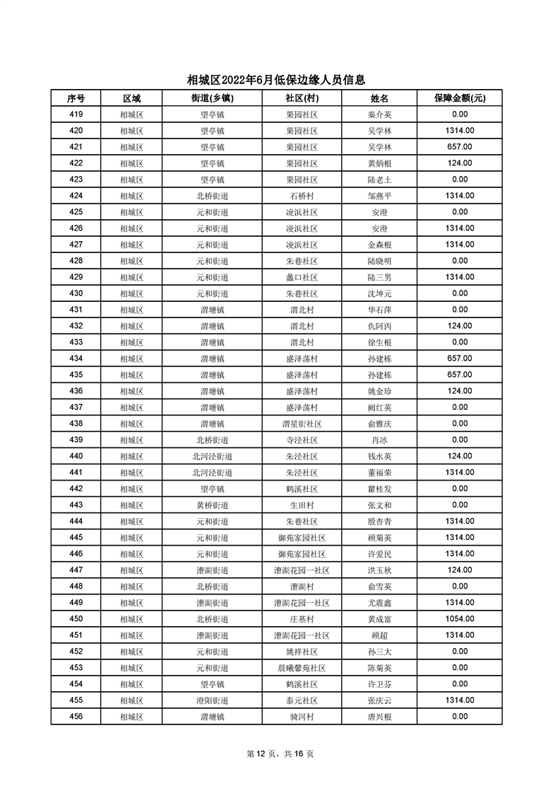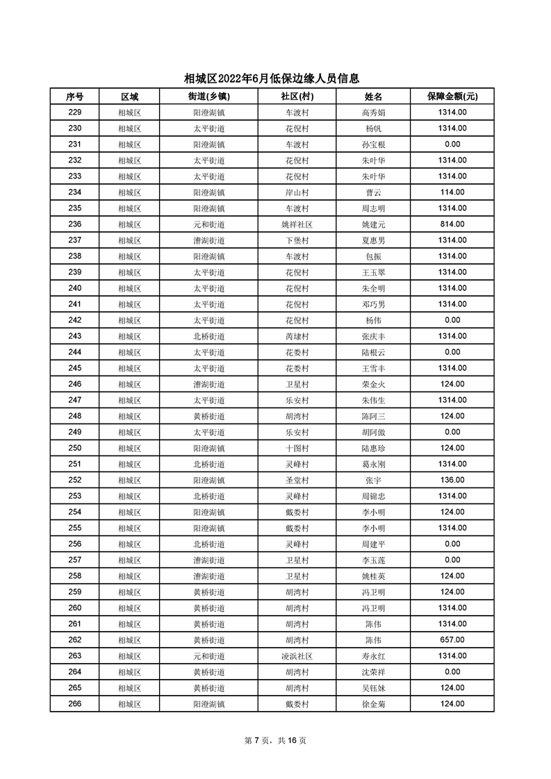 相城區(qū)2022年6月低保邊緣人員信息