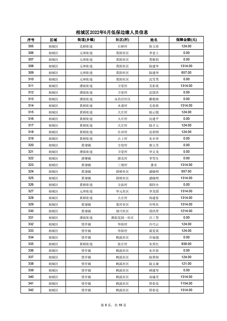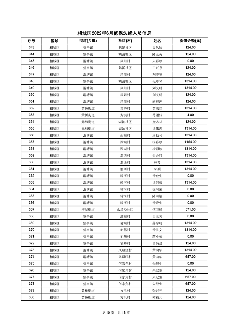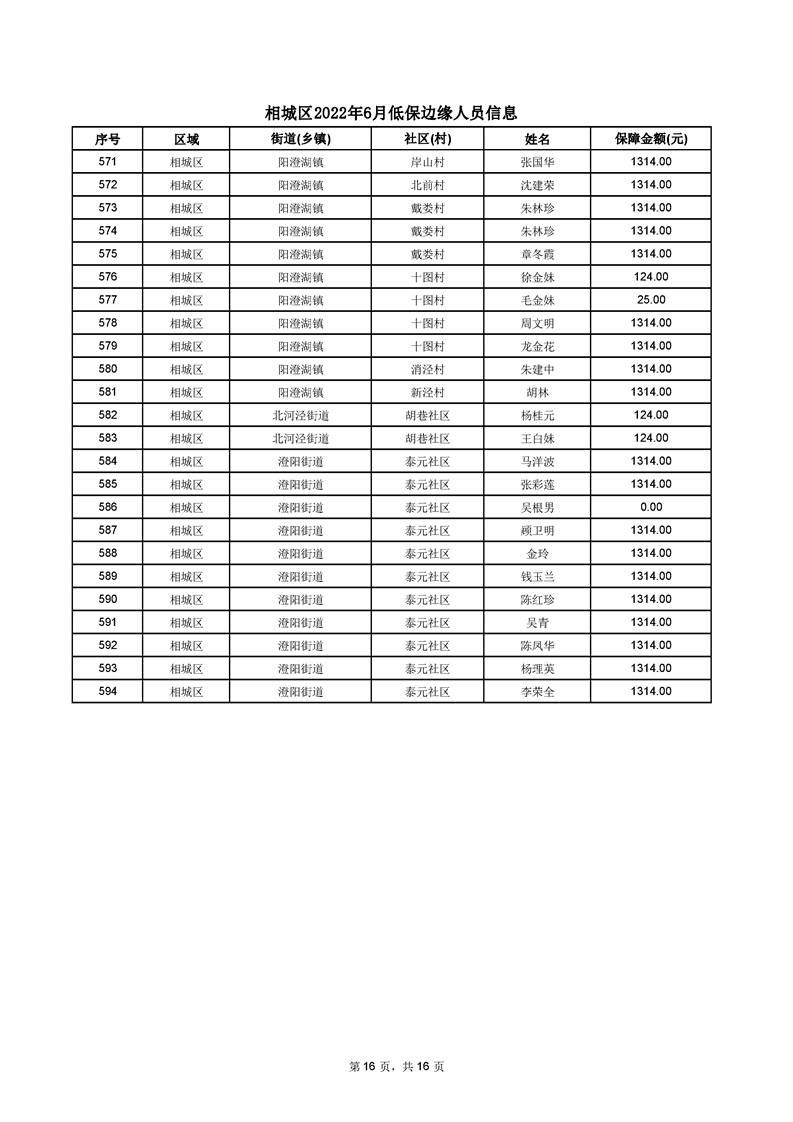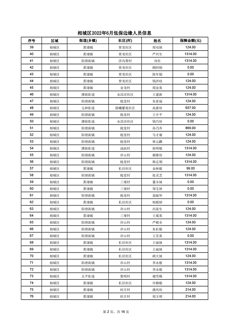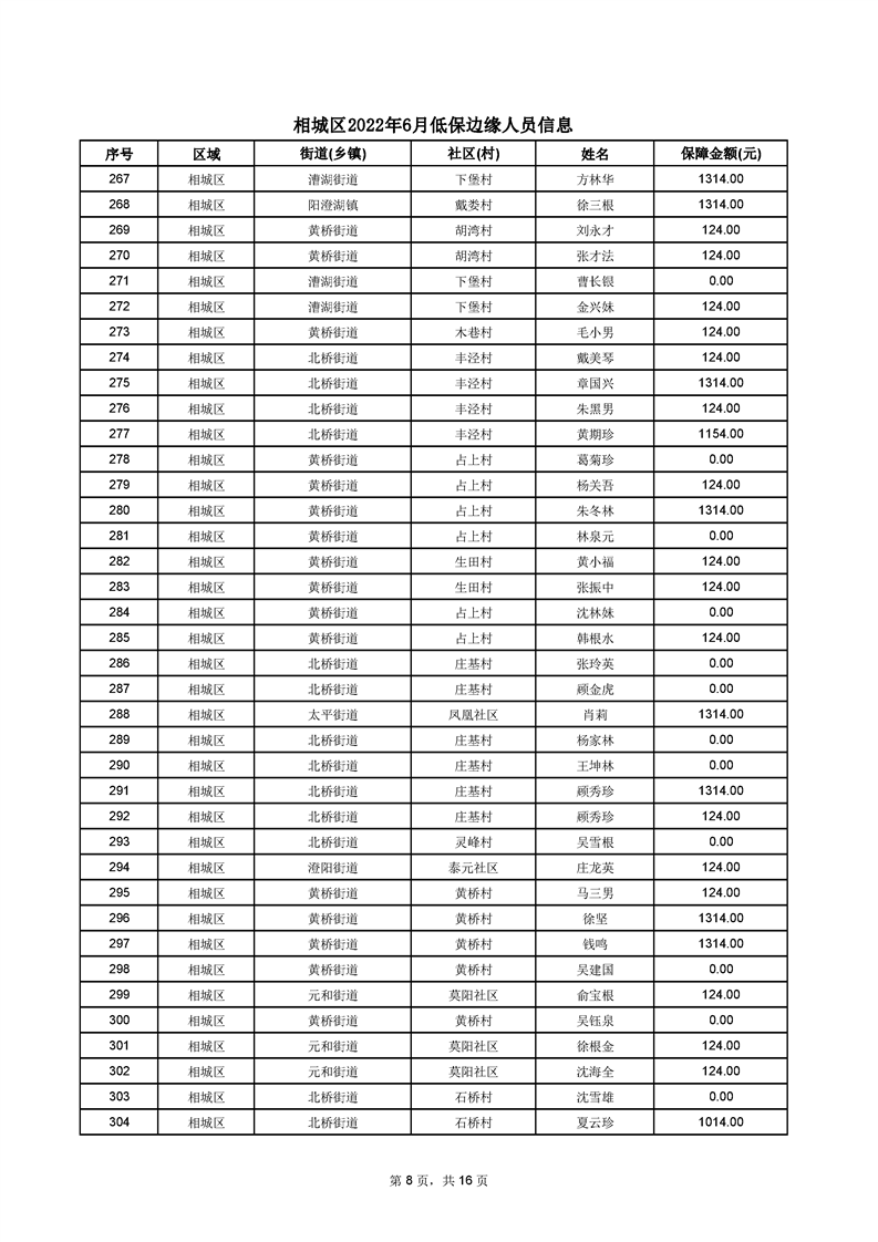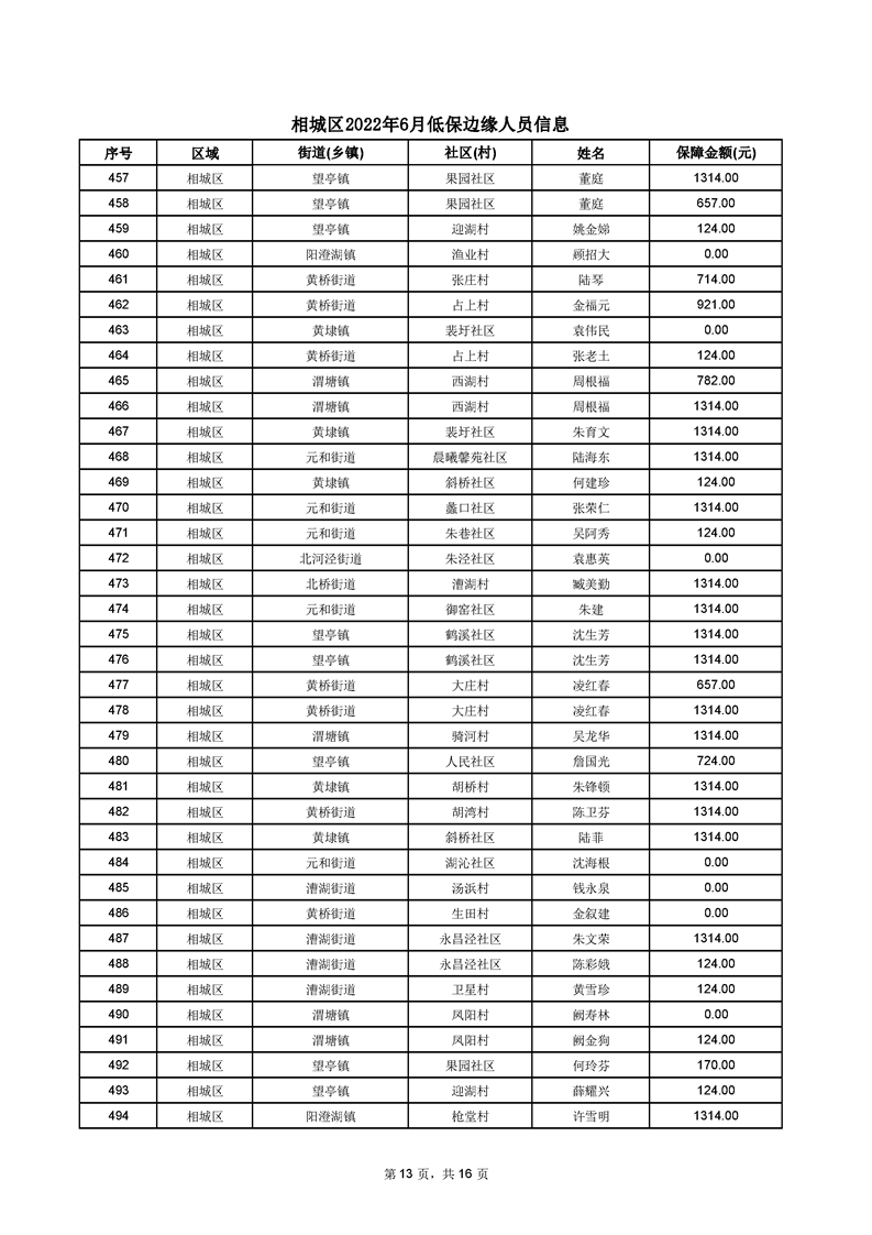 相城區(qū)2022年6月低保邊緣人員信息