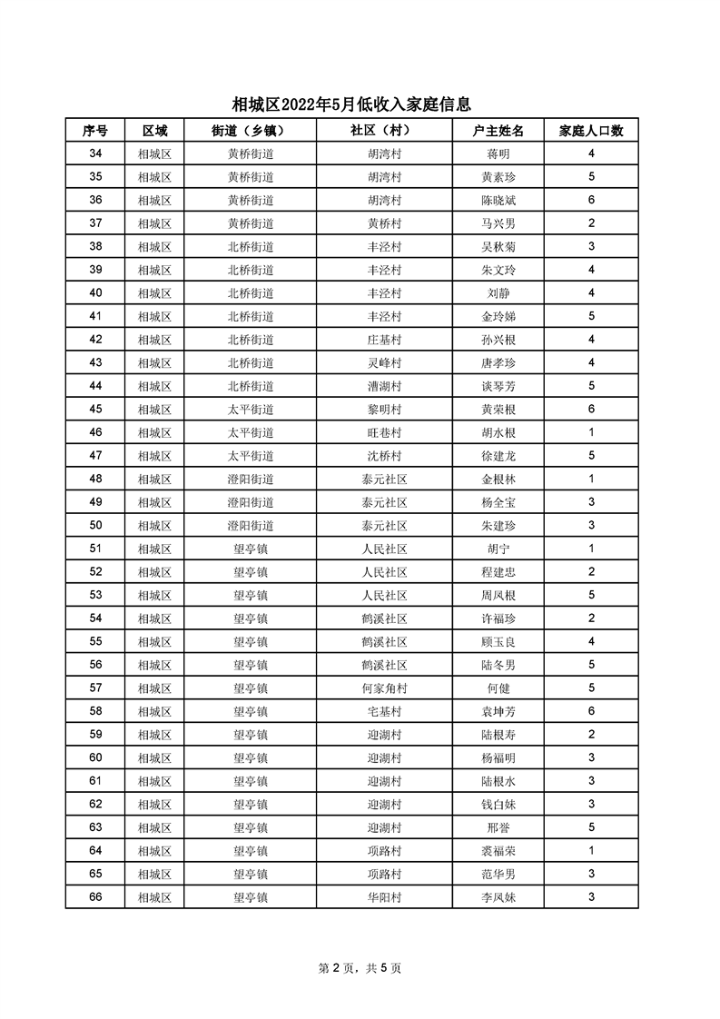 相城區(qū)2022年5月低收入家庭信息