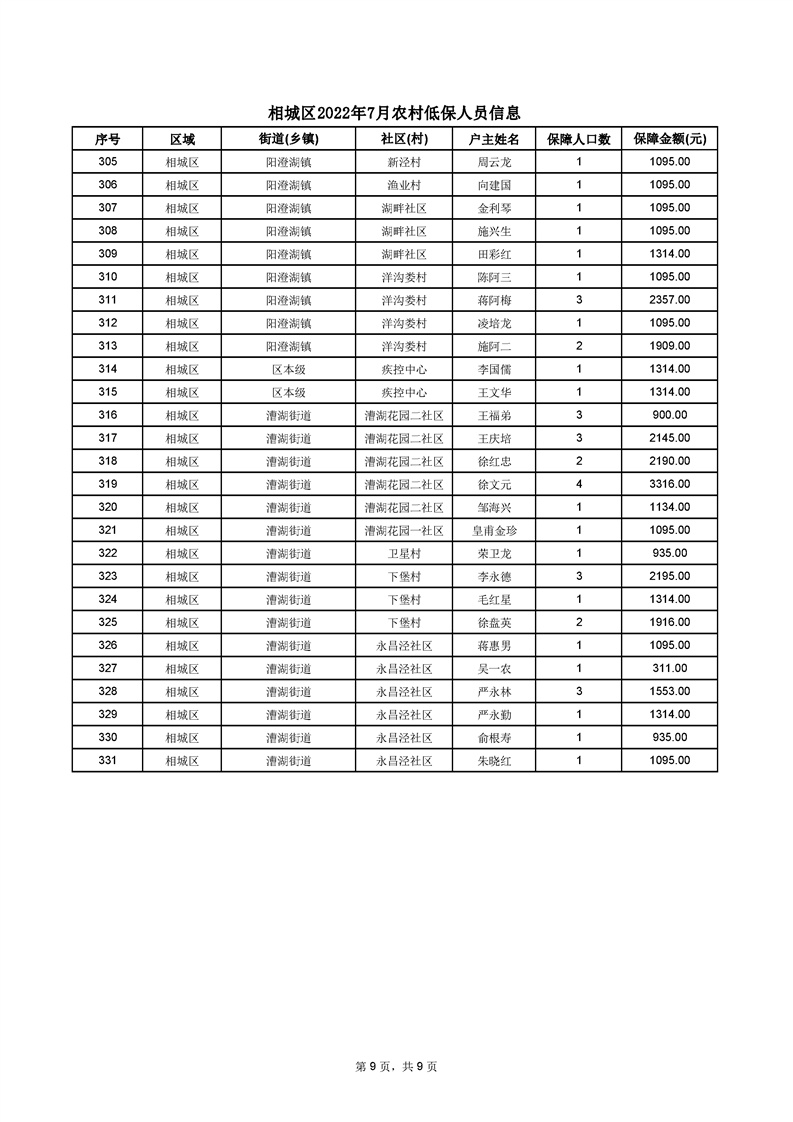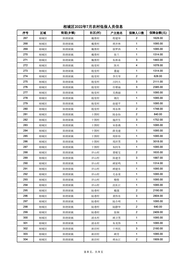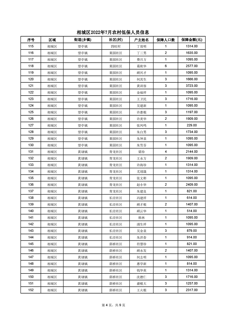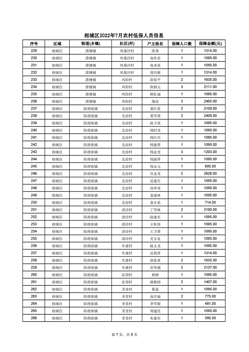 相城區(qū)2022年7月農(nóng)村低保人員信息