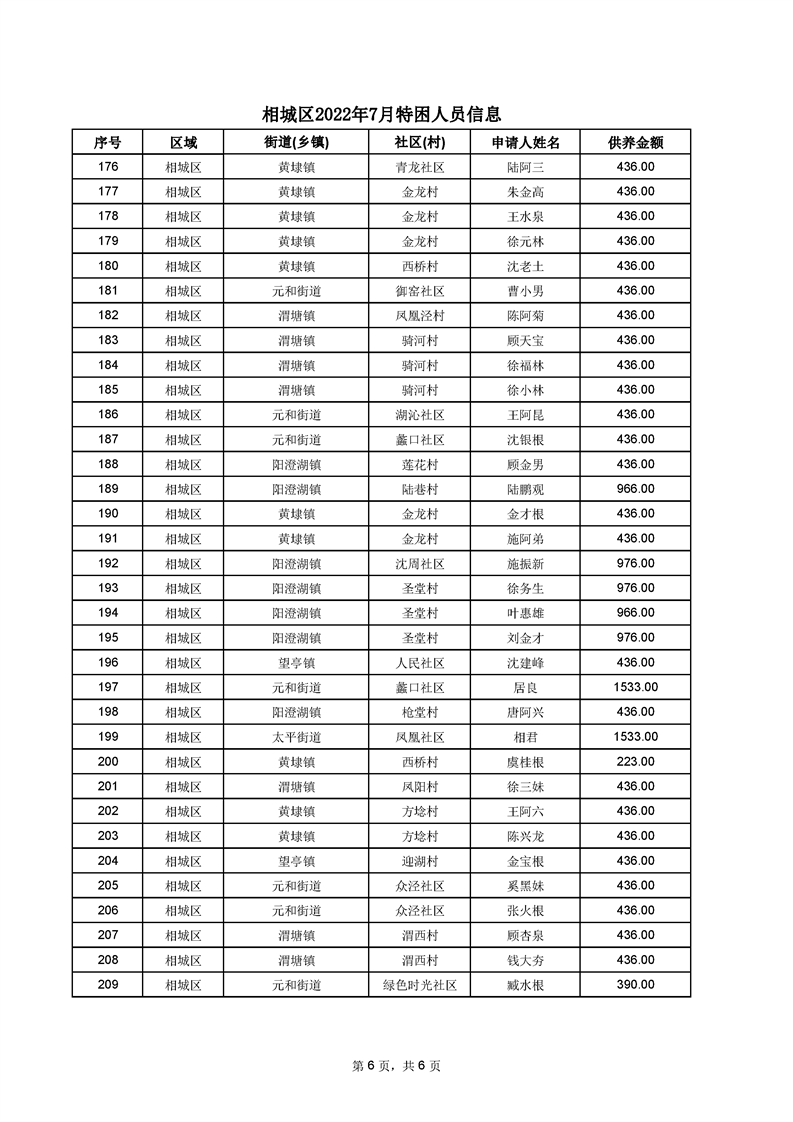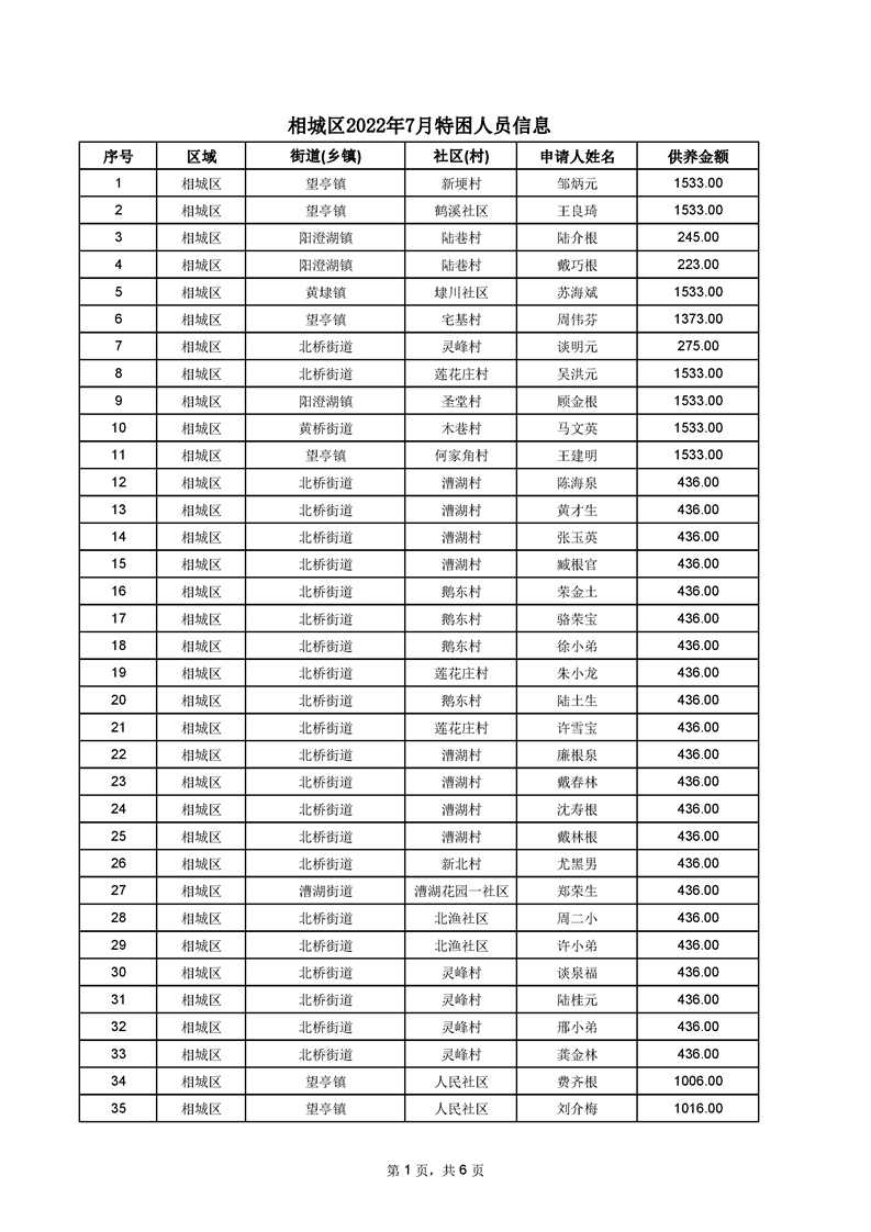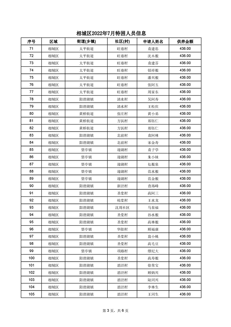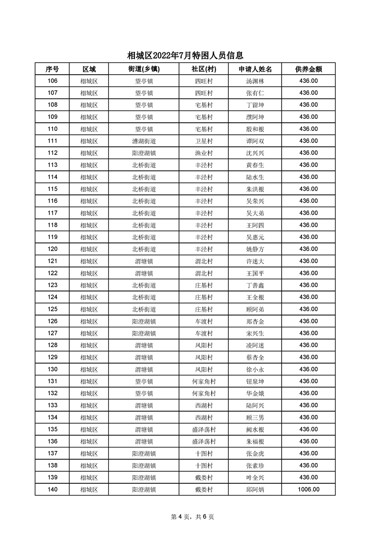 相城區(qū)2022年7月特困人員信息